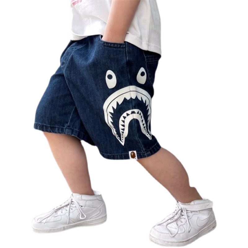男童夏季日系宽松鲨鱼印花牛仔裤
