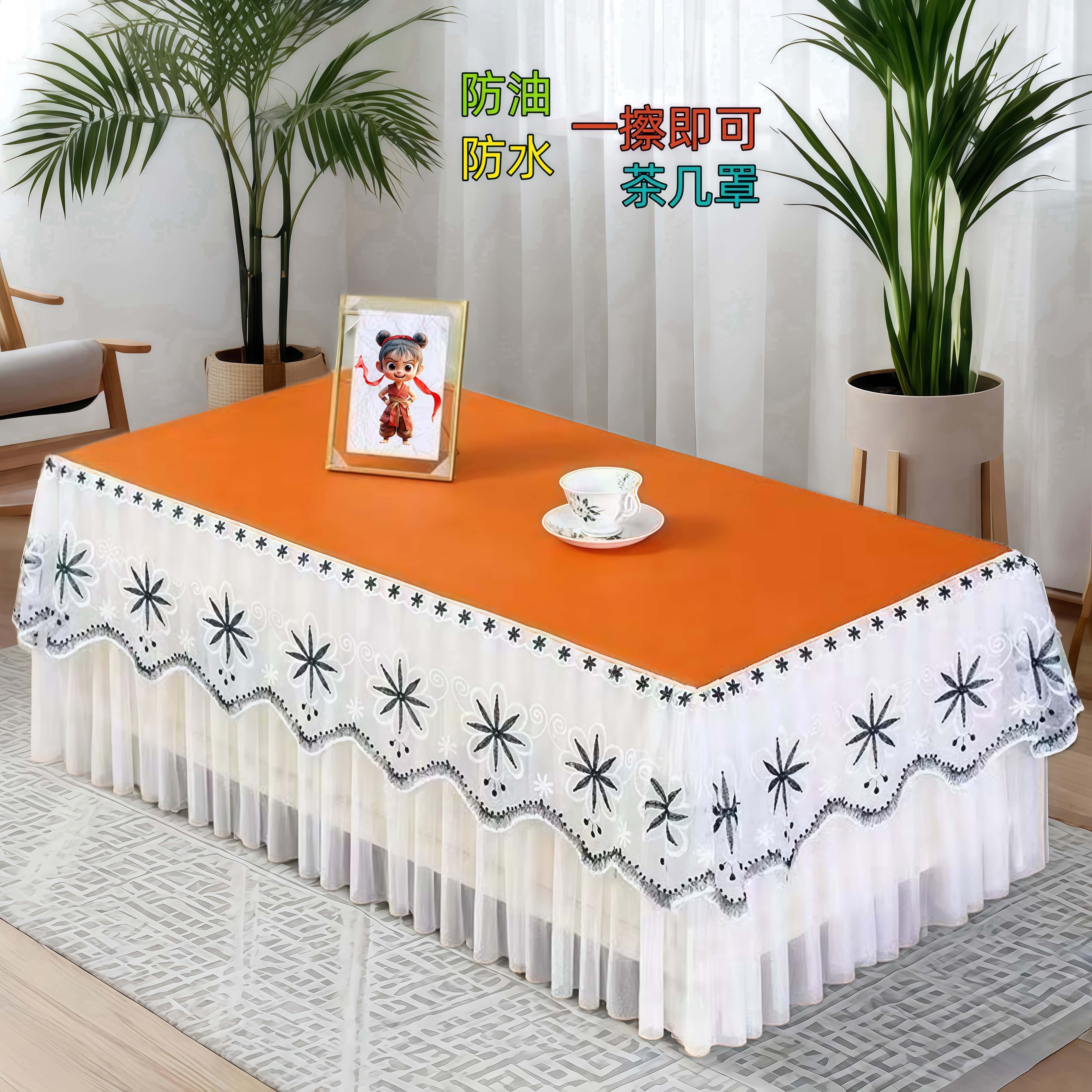 新款防水防油茶几桌布免洗可擦餐桌布防烫电视柜罩套蕾丝万能盖巾