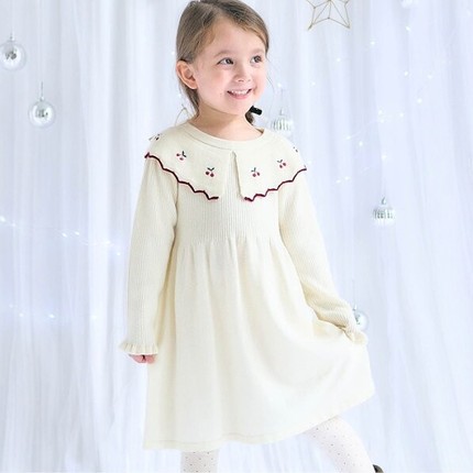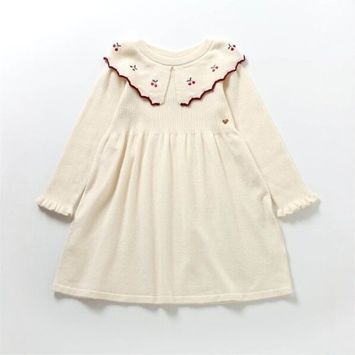 日本2025春季女小童裙翻领刺绣针织裙日系外贸可爱甜美花边连衣裙