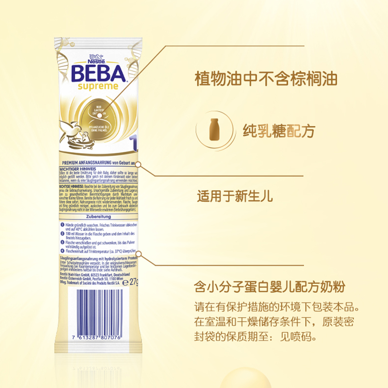 德国雀巢BEBA贝巴至尊版新版奶粉试用装6种HMO1段小样27g*4包装