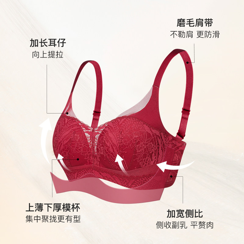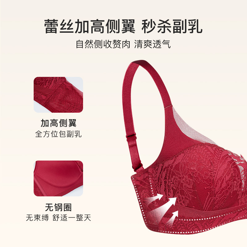 古今内衣女本命红小胸聚拢网纱蕾丝无钢圈文胸收副乳文胸罩