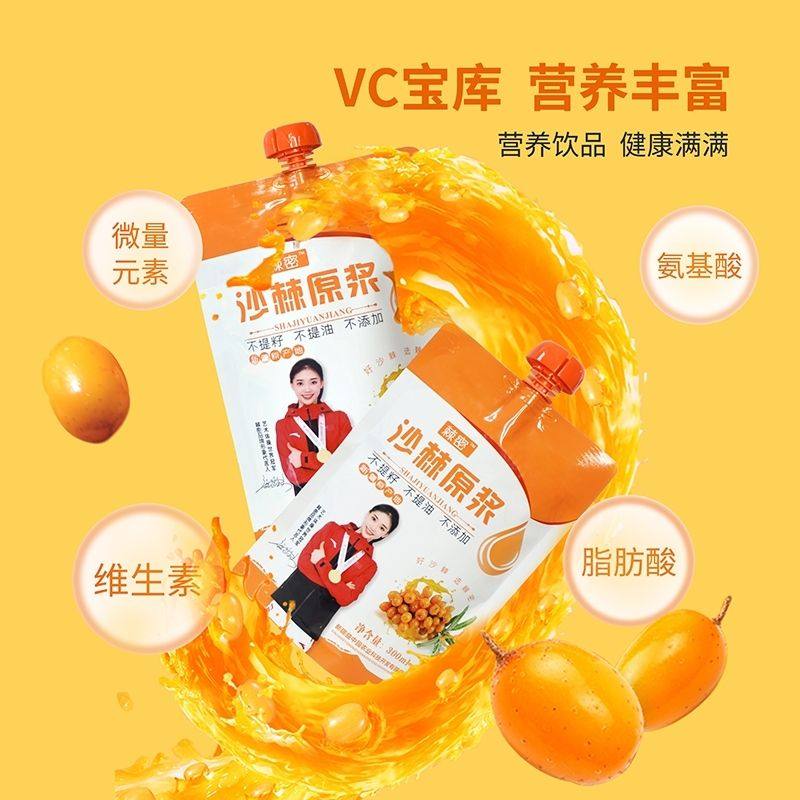新疆棘密沙棘原浆无添加鲜榨500ml纯沙棘汁含沙棘果沙棘油正品