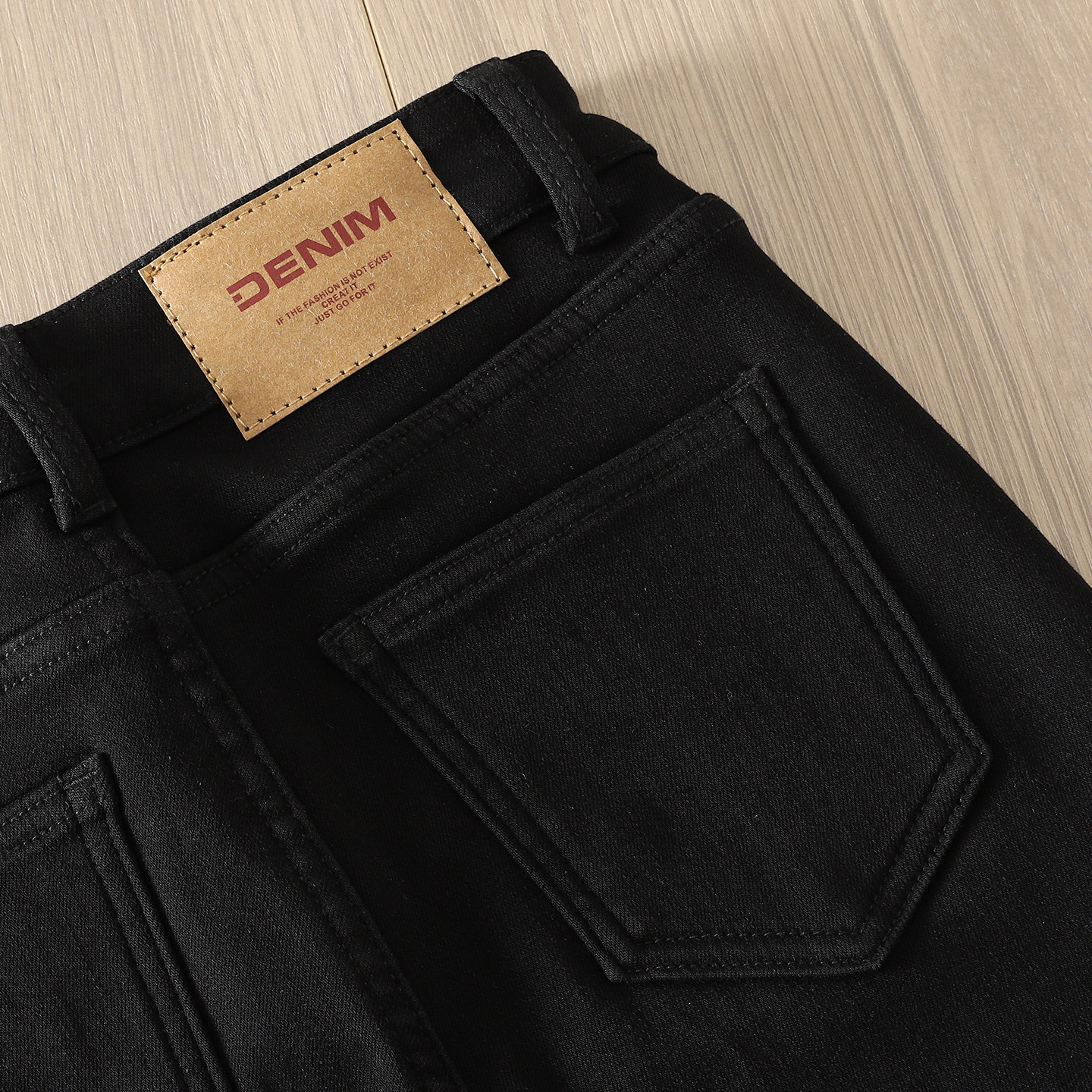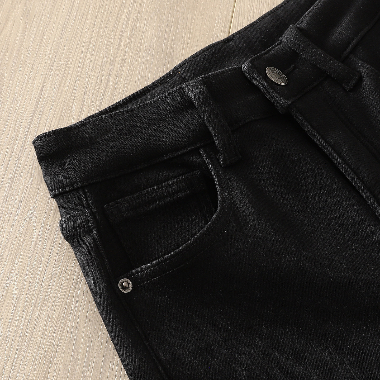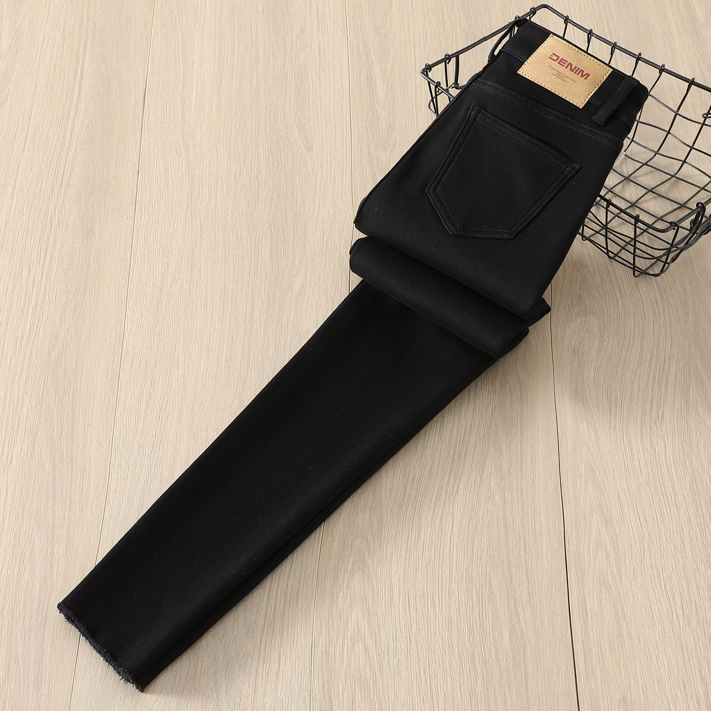 拉夏贝尔毛边时尚小脚牛仔裤女2025秋冬加绒加厚保暖外穿紧身靴裤