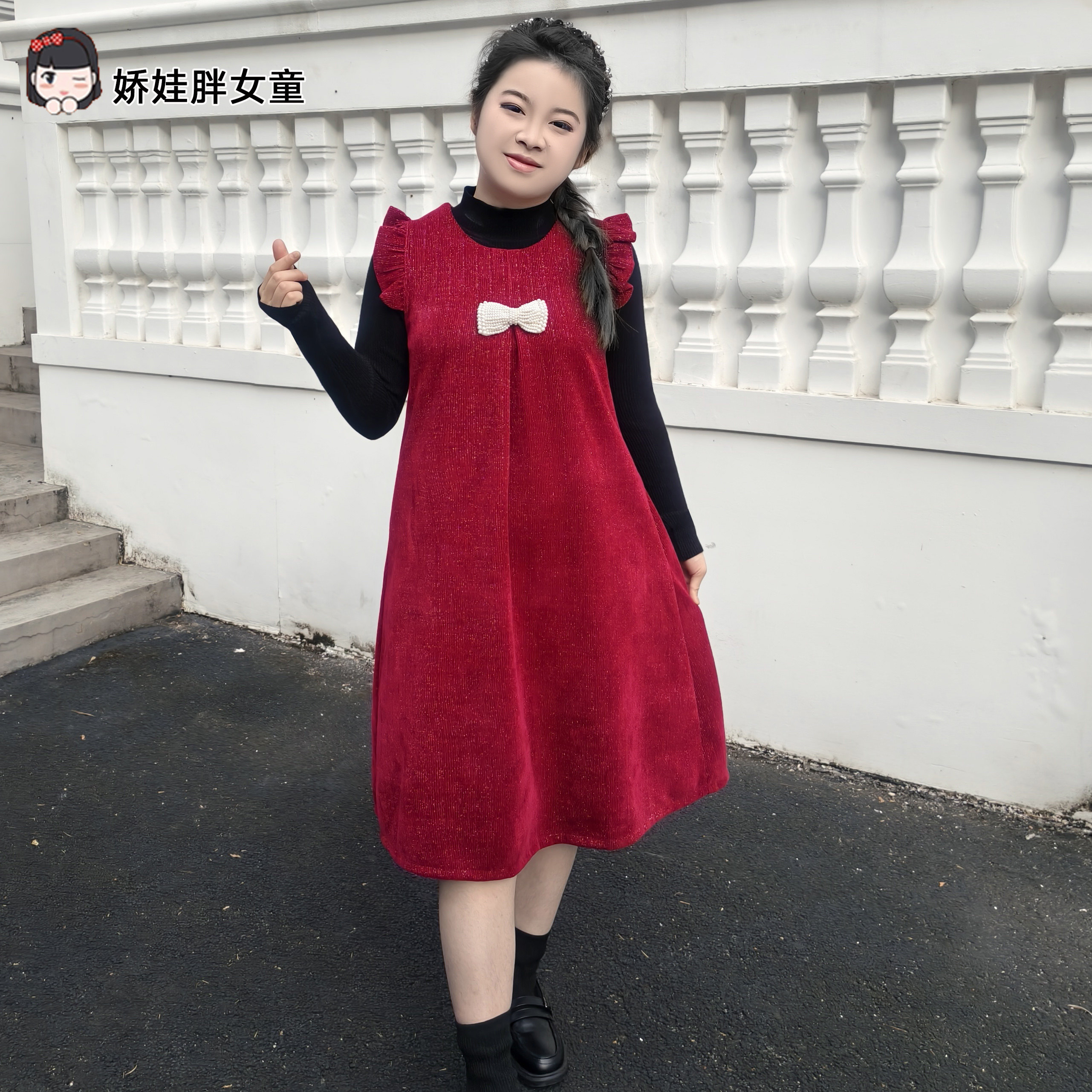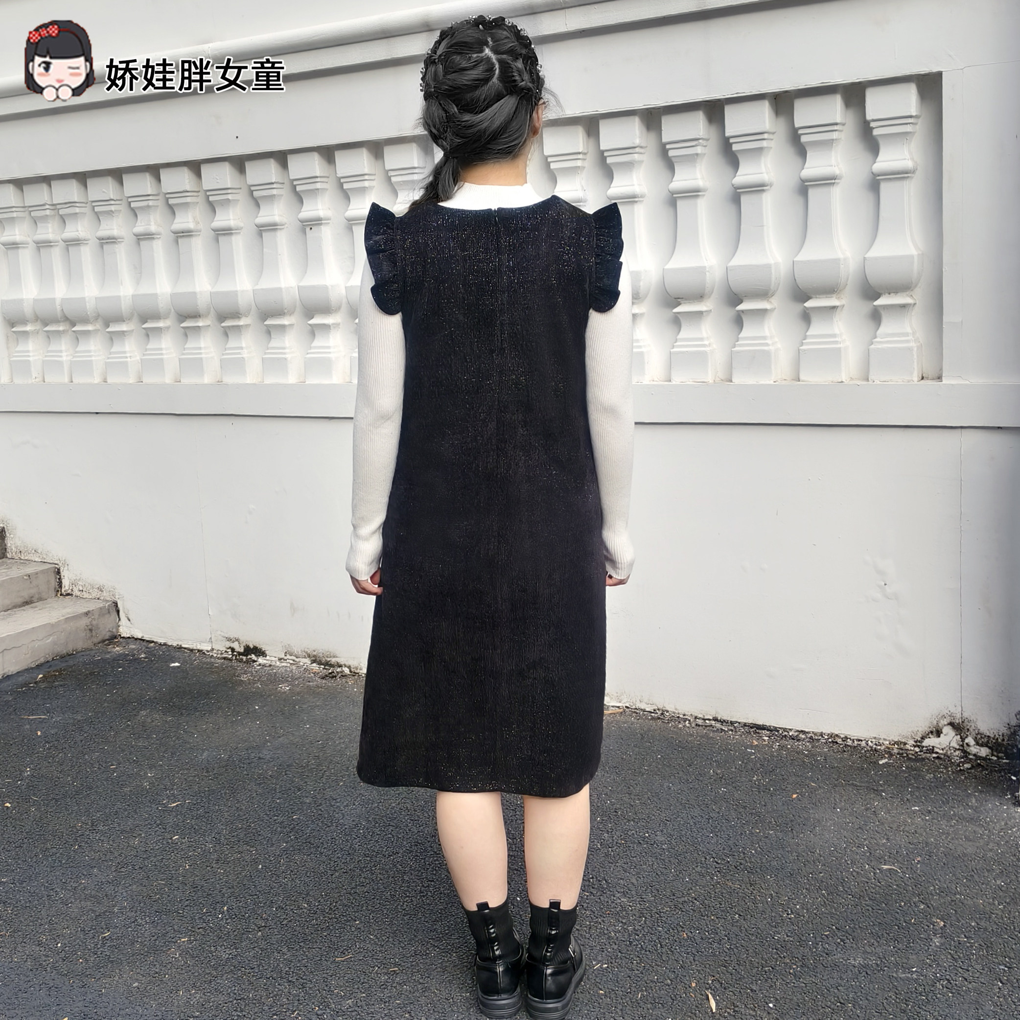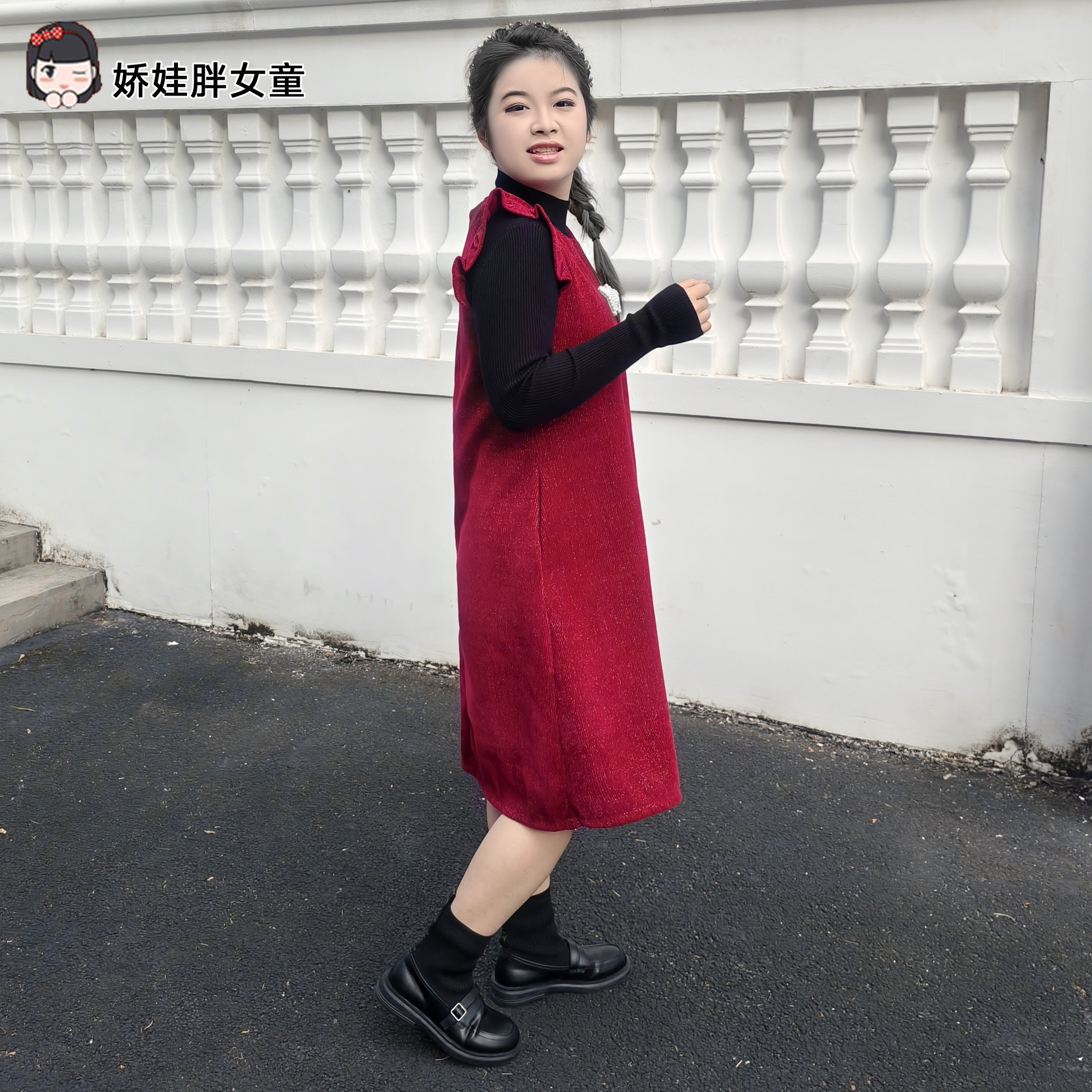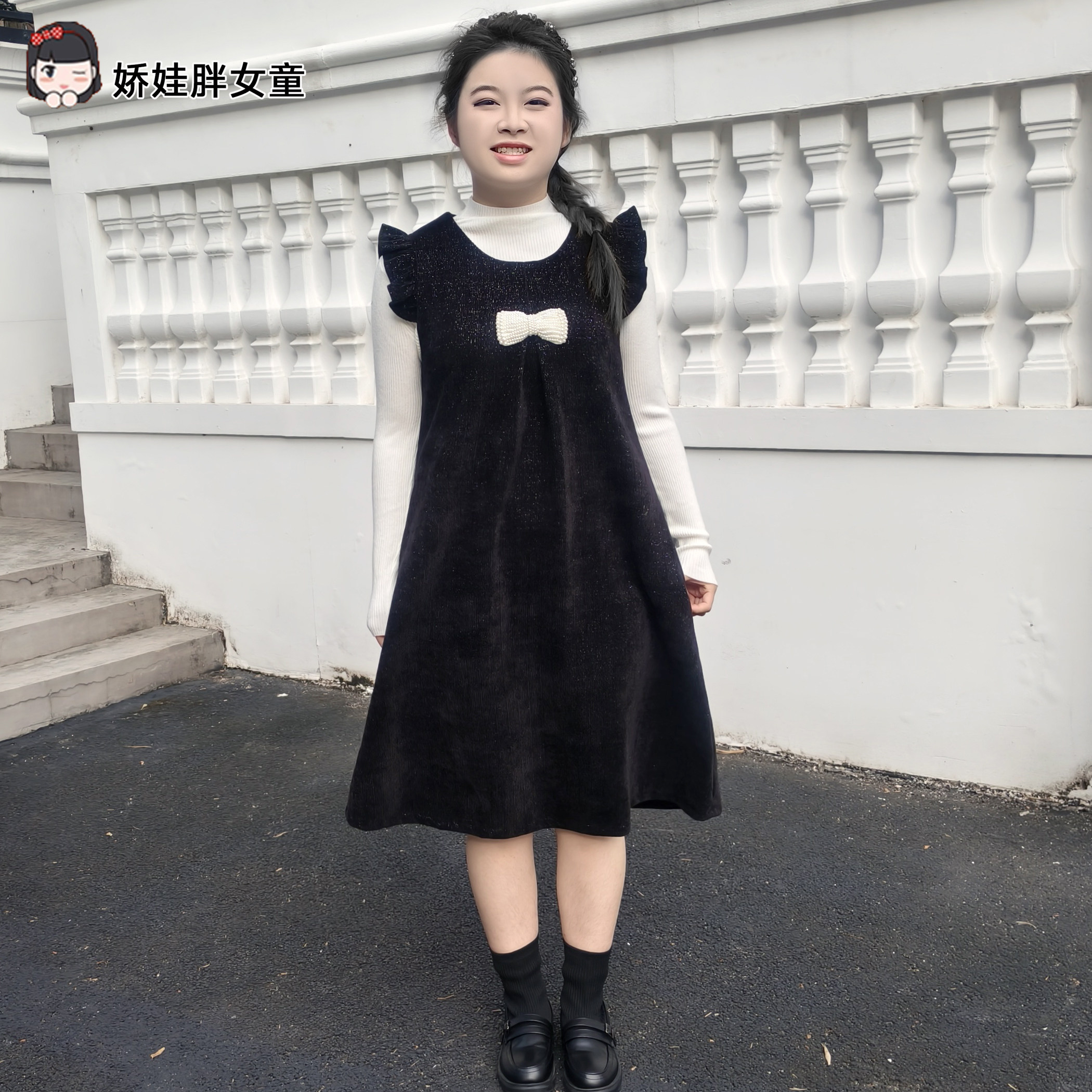 胖女童呢子背心裙针织打底衫套装秋冬新款洋气女大童公主连衣裙