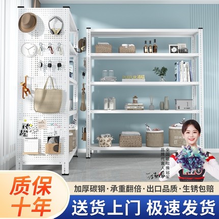 送洞洞板家用落地多层置物架货架超市阳台储物架厨房多功能白色
