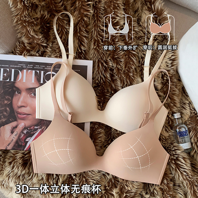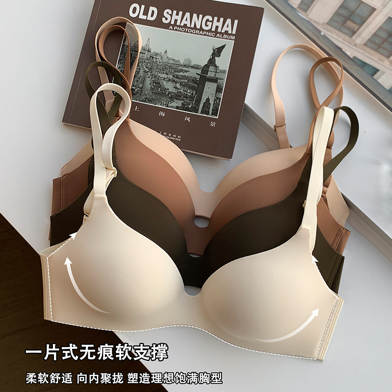 无痕一片式粉底液内衣女小胸聚拢光面透气无钢圈收副乳防下垂文胸
