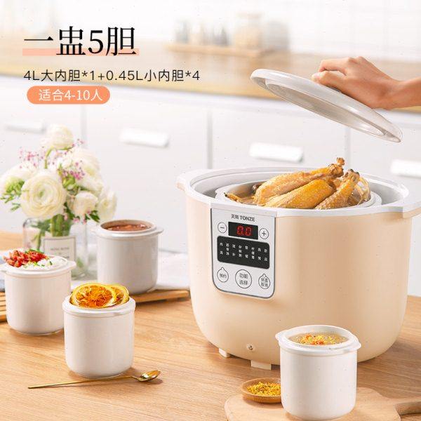 天际电炖锅陶瓷隔水炖盅全自动家用燕窝大容量煮粥煲汤一锅五胆4L