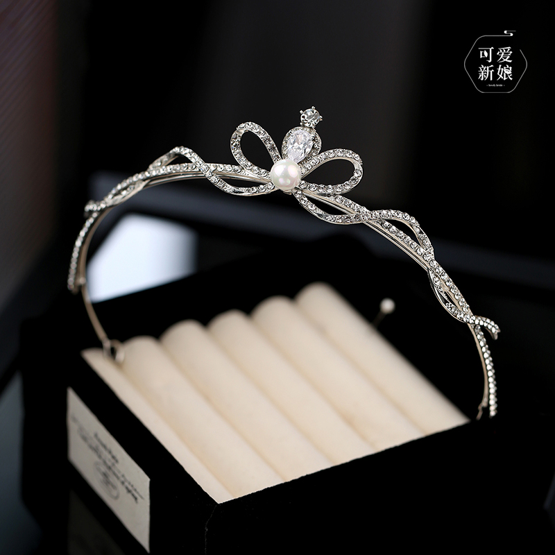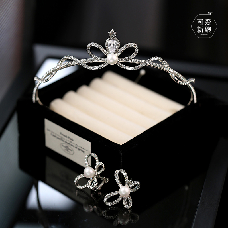 高级感新娘头饰法式复古珍珠皇冠耳环套装结婚礼服主婚纱简约配饰