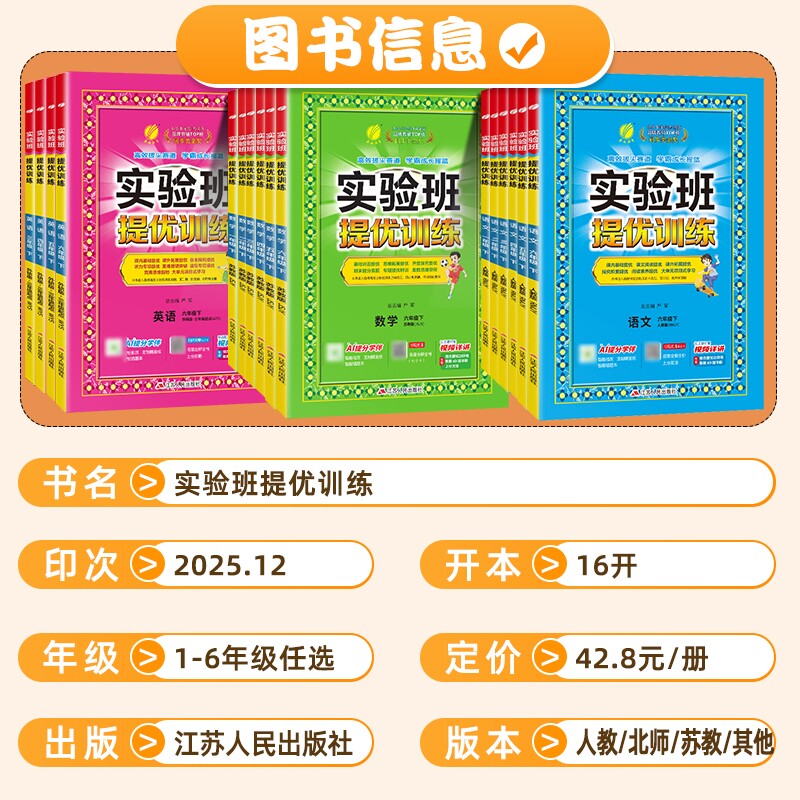 2026春新版 实验班提优训练小学一年级二三四五六年级上册下册语文数学英语科学人教版北师大教科版教材同步练习册专项训练