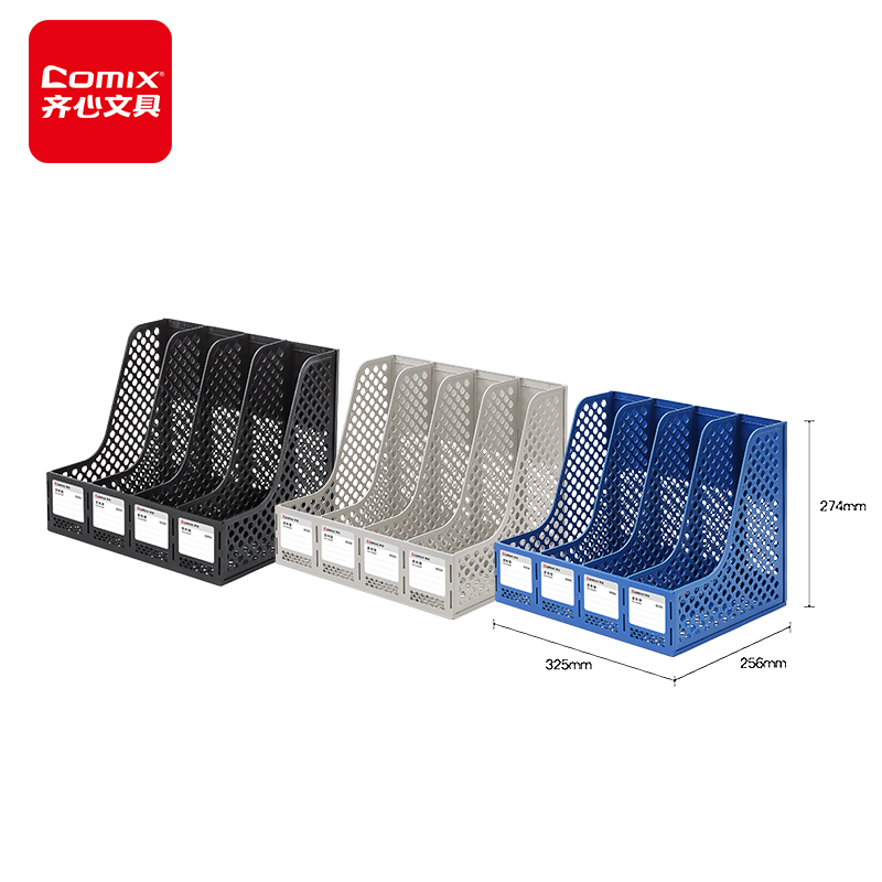 齐心B2054桌上桌面收纳整理盒放置架资料架四格办公文件收纳架 B2053 三格办公文件收纳架