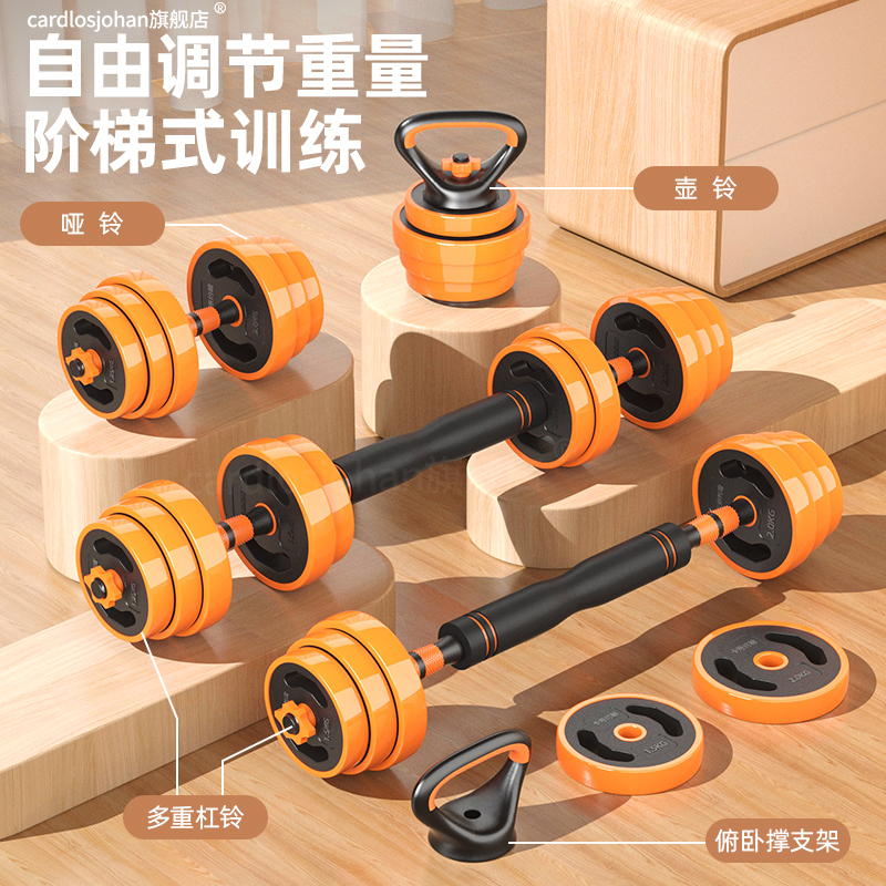 哑铃男士健身家用器材实心杠铃套装宿舍可调节重量壶铃20公斤一对