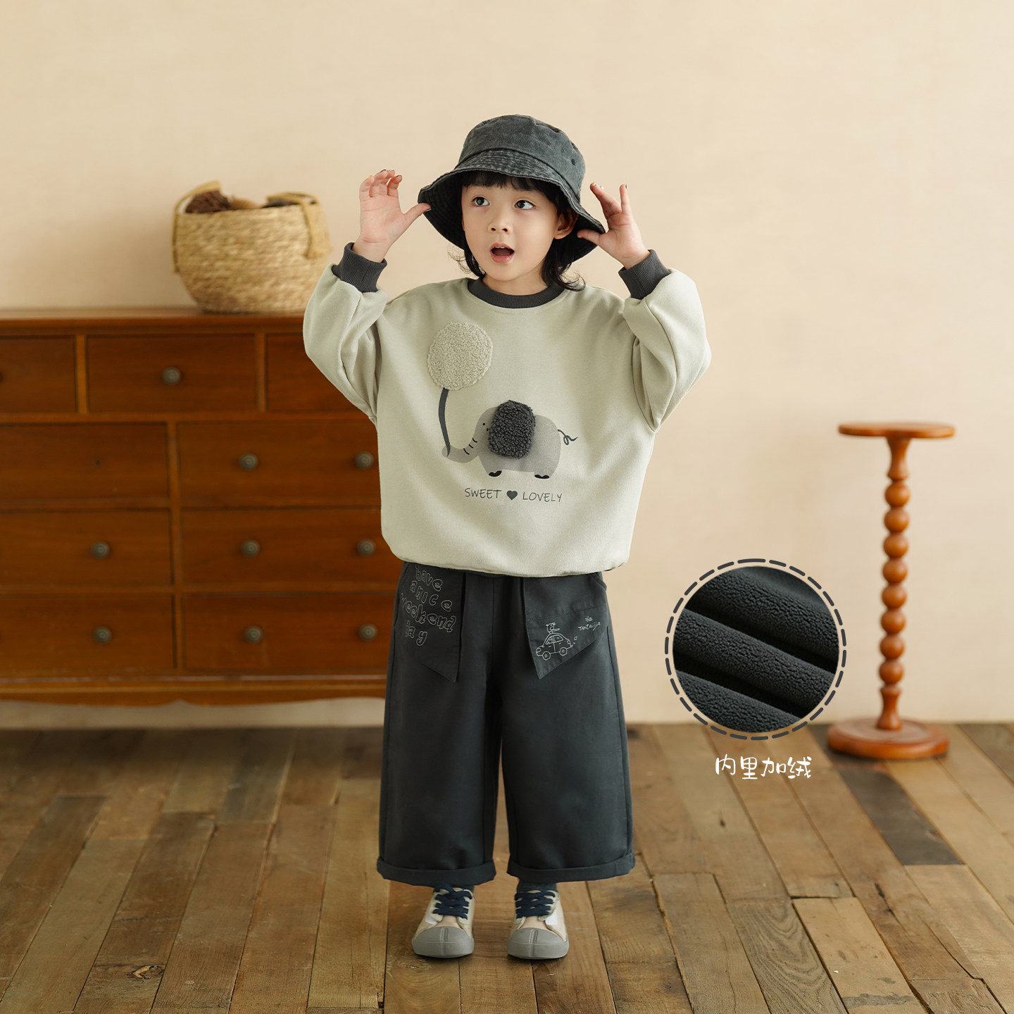 砚台家童装男童纯棉加绒直筒裤秋冬款儿童休闲裤春装新款时髦裤子