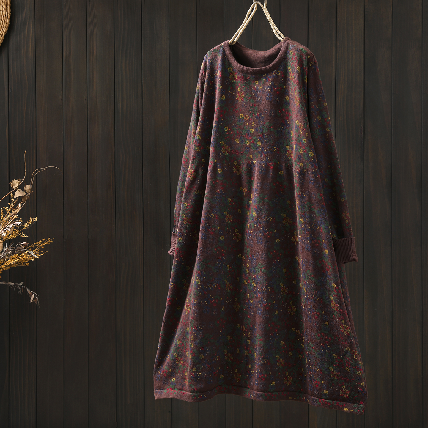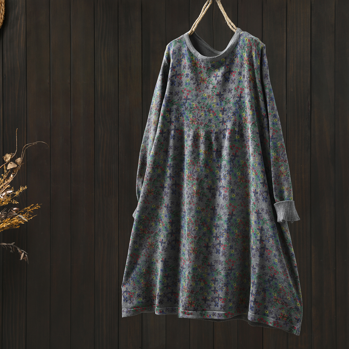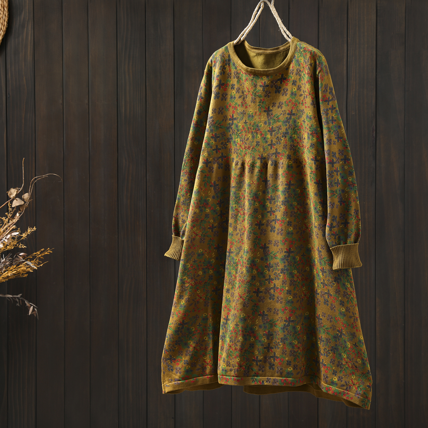 巨好看的早秋裙子2025新款复古气质中长款打底长袖碎花针织连衣裙