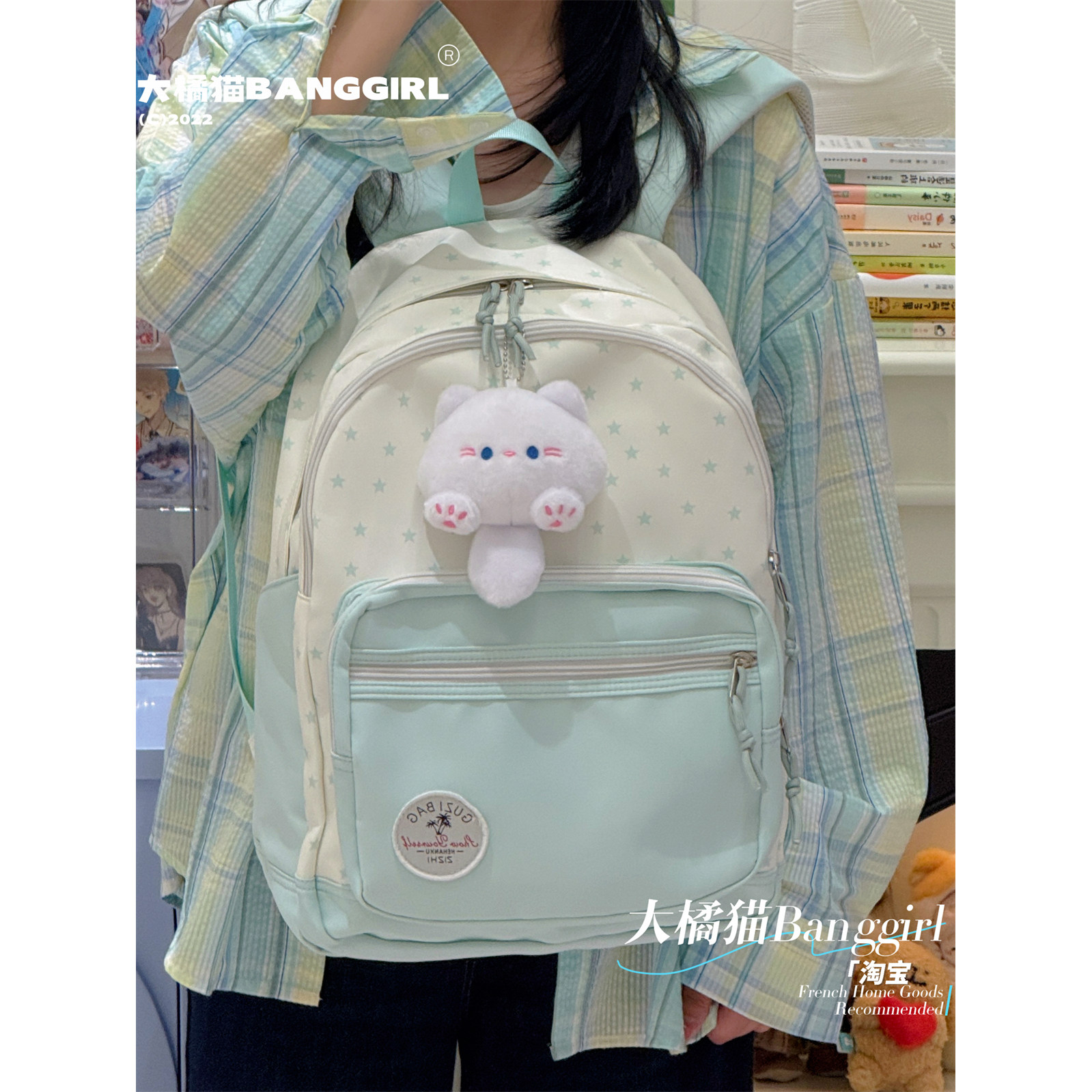 大橘猫2026新款初中生书包韩版高颜值撞色百搭高中大学生双肩背包