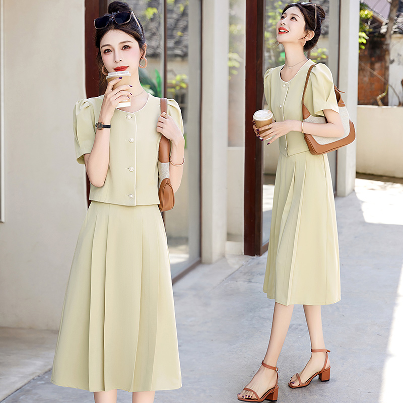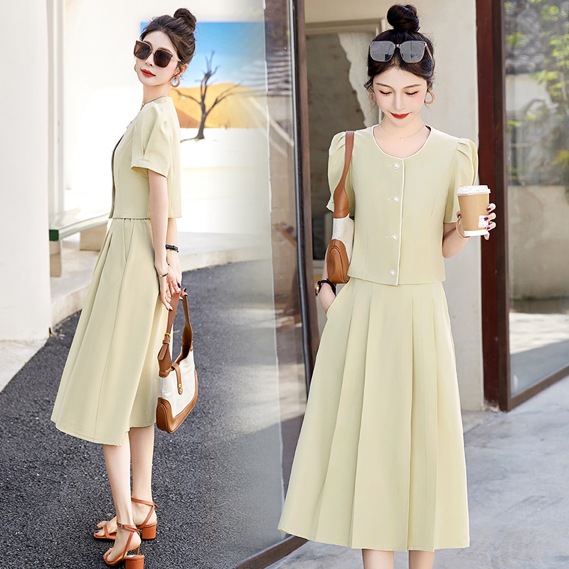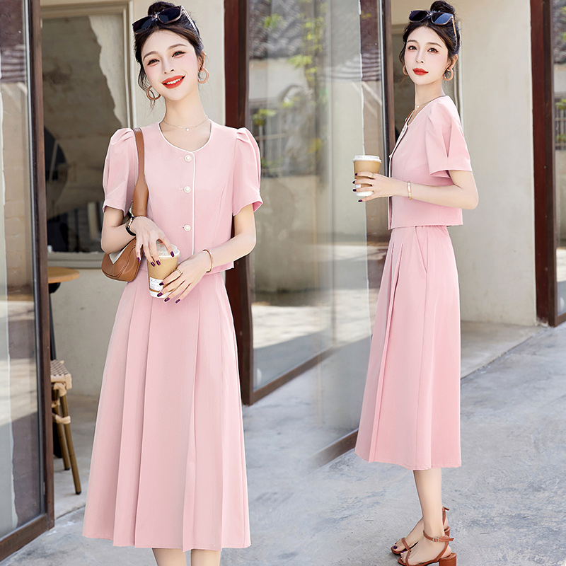 粉色小香风两件套连衣裙女2025夏季新款气质洋气减龄短袖套装裙子