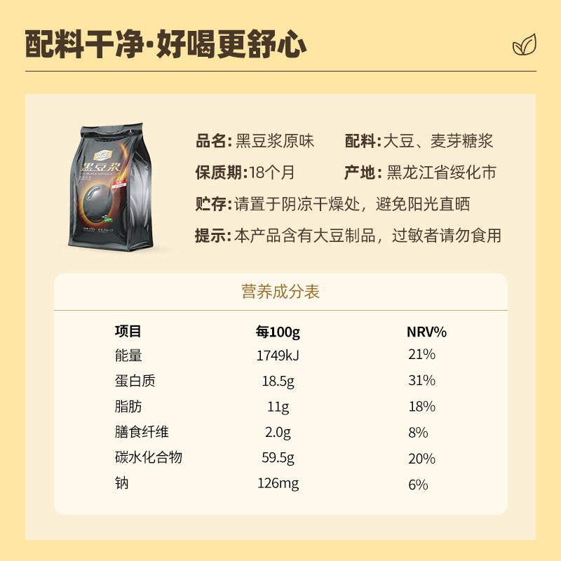 龙王原味黑豆浆粉高蛋白速溶冲饮非转基因学生儿童孕妇营养早餐