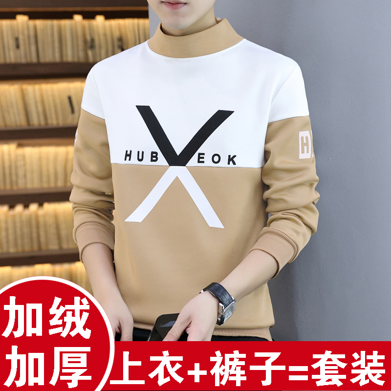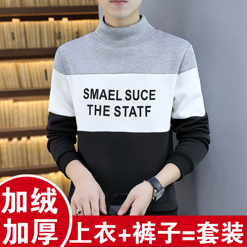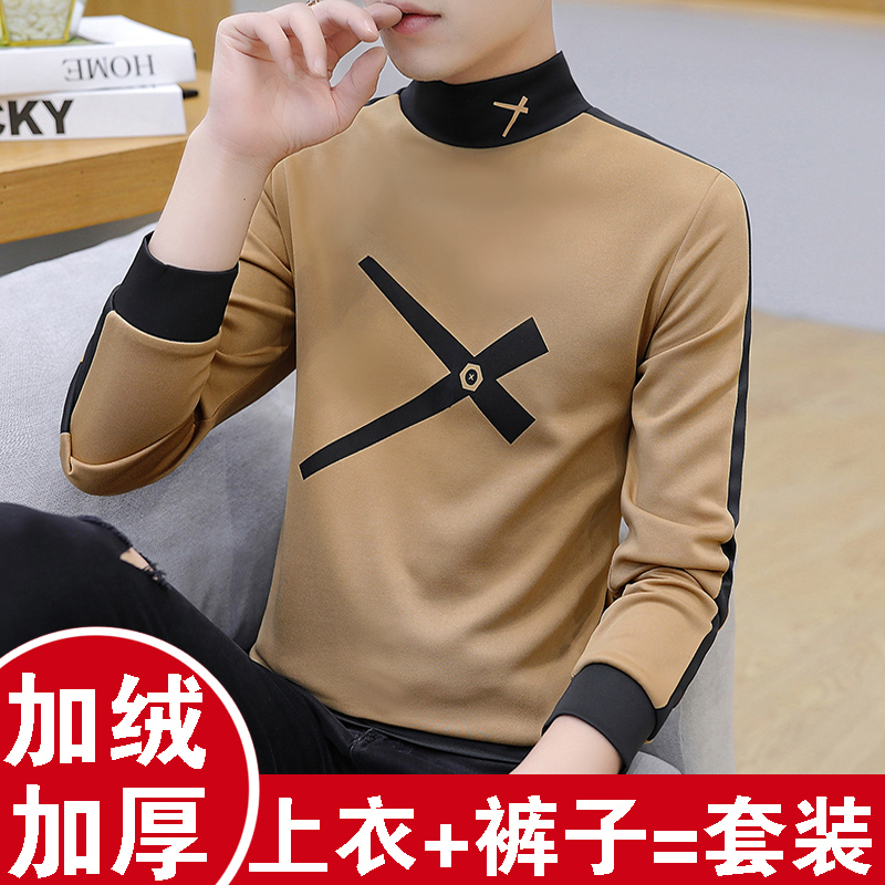 冬季保暖内衣男加厚加绒一套衣服可外穿秋衣秋裤半高领潮流套装男