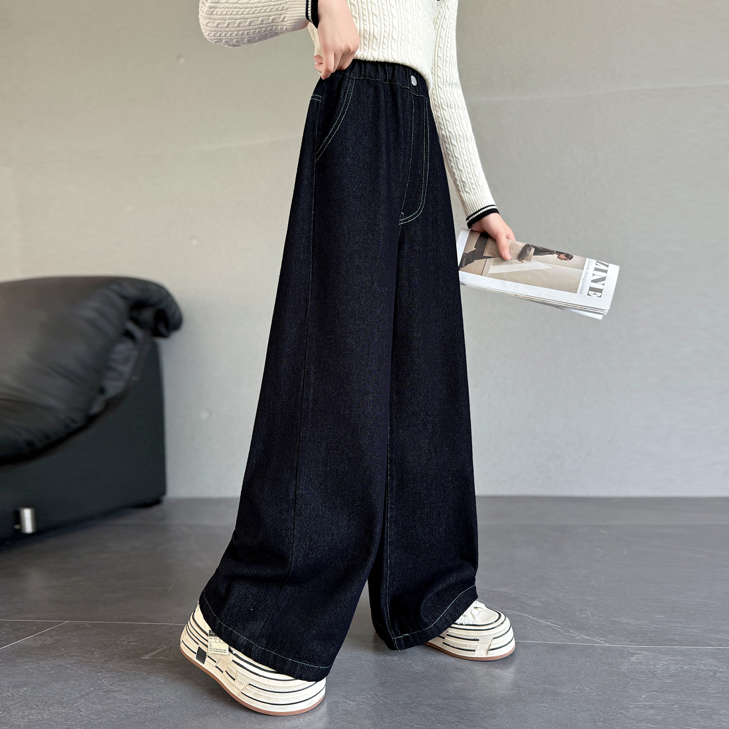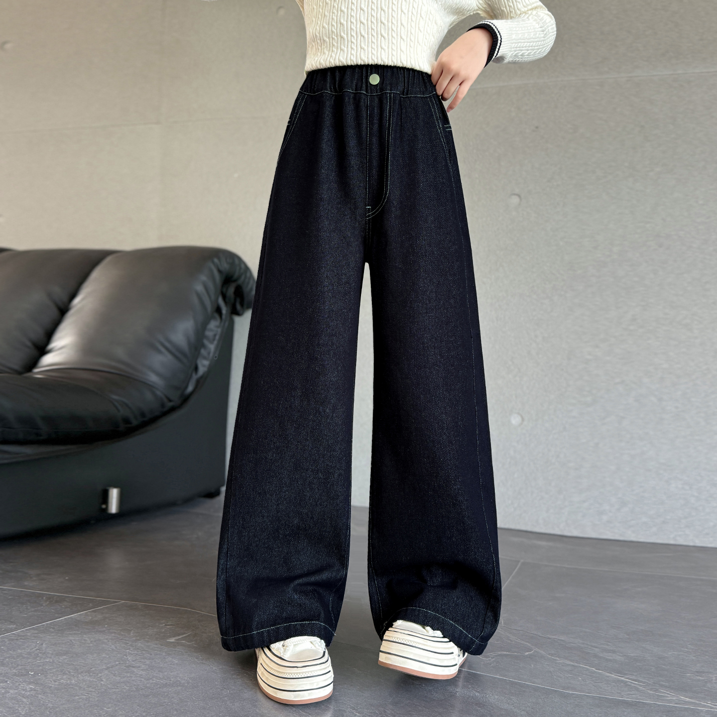 女童裤子秋冬新款儿童加绒牛仔裤秋季长裤女孩大童加厚直筒阔腿裤