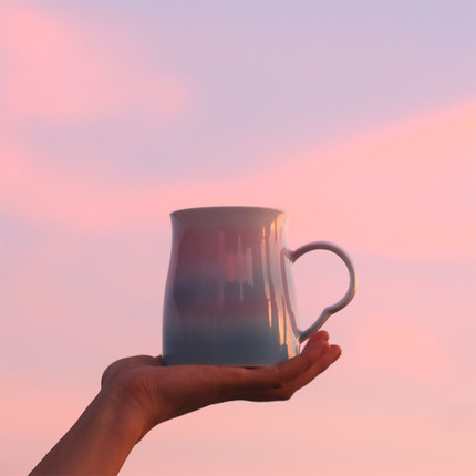 子木晚霞彩云渐变粉可爱少女陶瓷马克杯办公早餐杯水杯挂耳咖啡杯