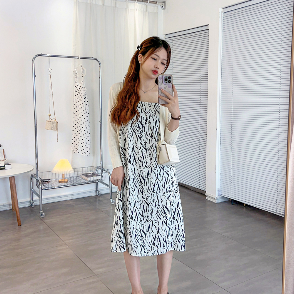 150小个子夏季度假风吊带露肩修身碎花雪纺中长款连衣裙女装2023