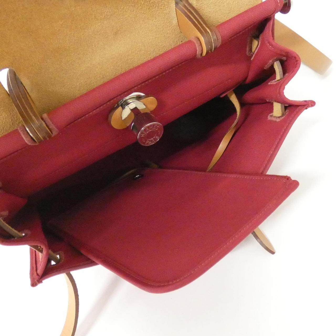 中古Hermes爱马仕女包B级9新HerBag Zip PM宝石红手提斜挎包