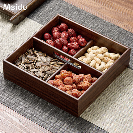 美杜木质中式复古四分格坚果盘