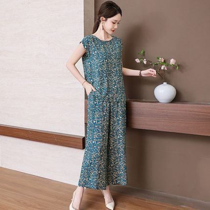 2026新款高端棉绸套装中年妈妈夏装短袖宽松九分大码两件套减龄