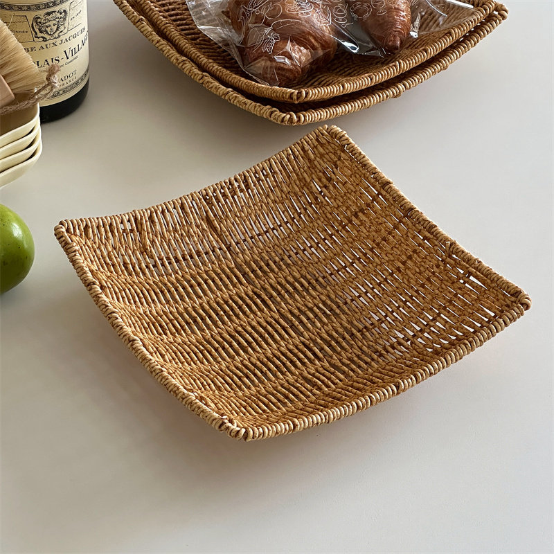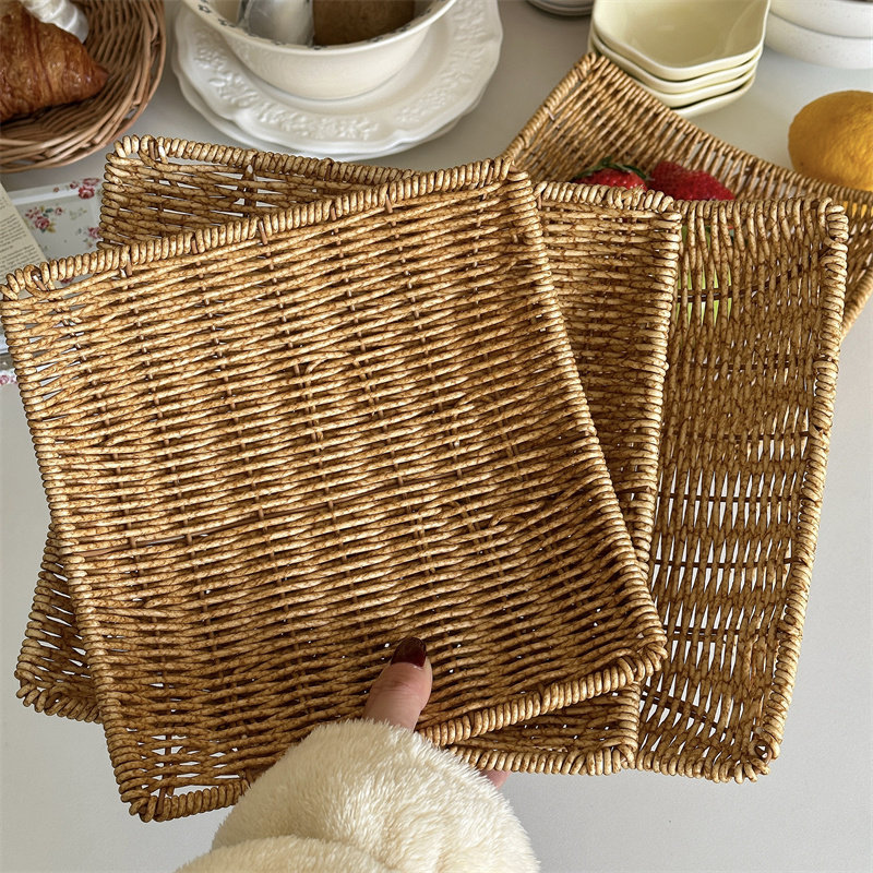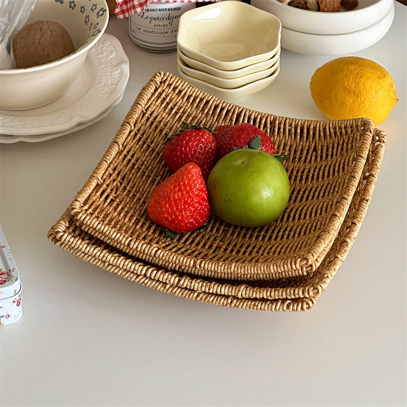 新年待客ins水果盘仿藤编创意客厅茶几家用零食果篮入户门收纳筐