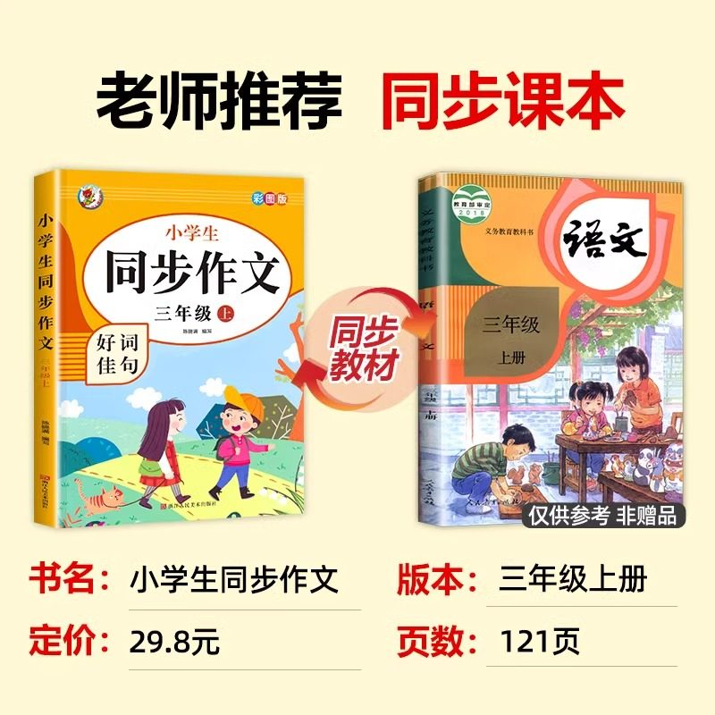 【2025新版】三年级上下册同步作文三下小学生语文同步作文人教版黄冈优秀作文书大全3年级上下册部编版入门起步专项训练老师推荐