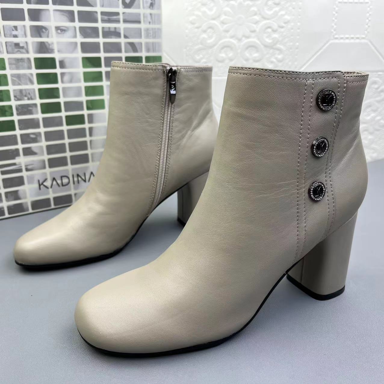 4679卡迪娜正品断码处理羊皮女靴里外全皮冬季新款短靴粗跟时装靴