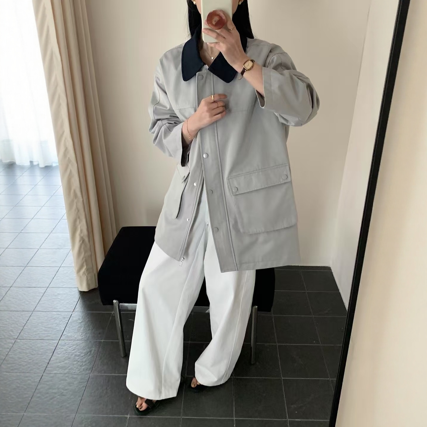 薏朵韩系翻领撞色风衣外套女小个子短款宽松休闲上衣2025秋季新款