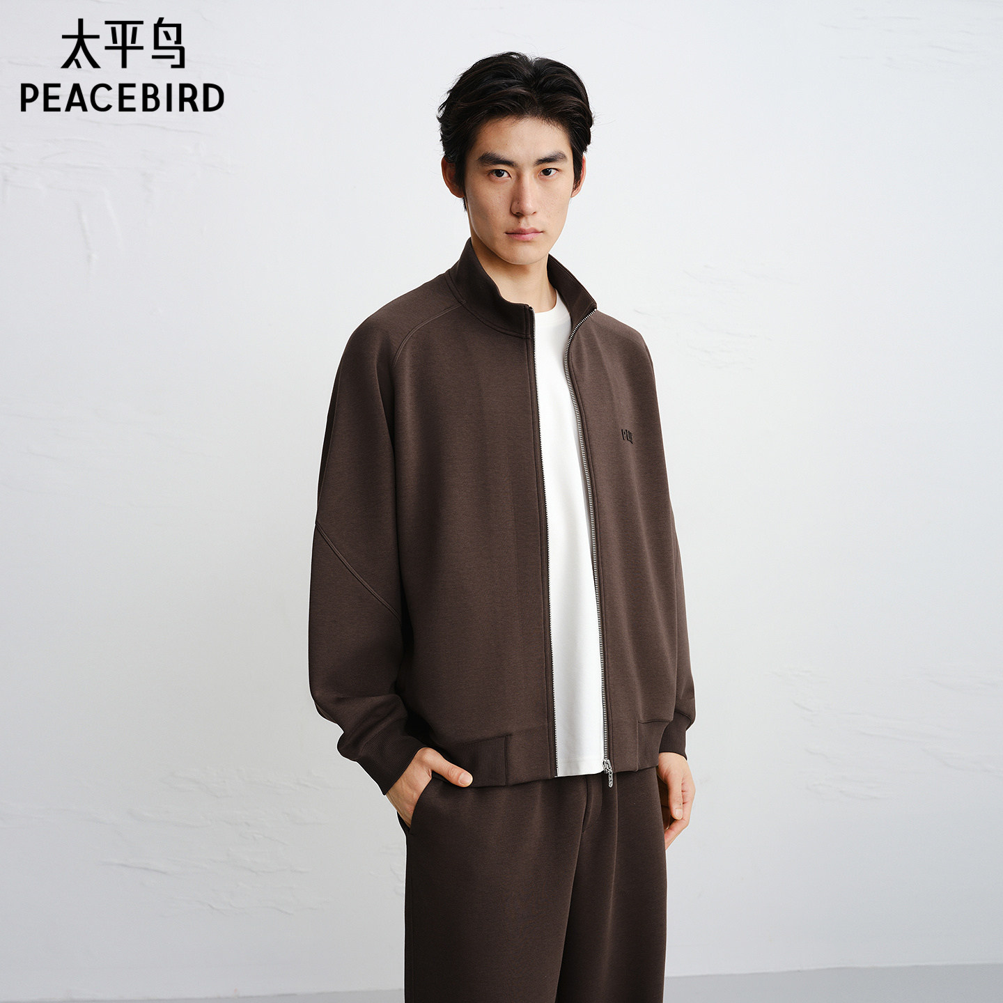 【商场同款】太平鸟男装 美式潮流外套男棕色开衫卫衣B1CRG1293