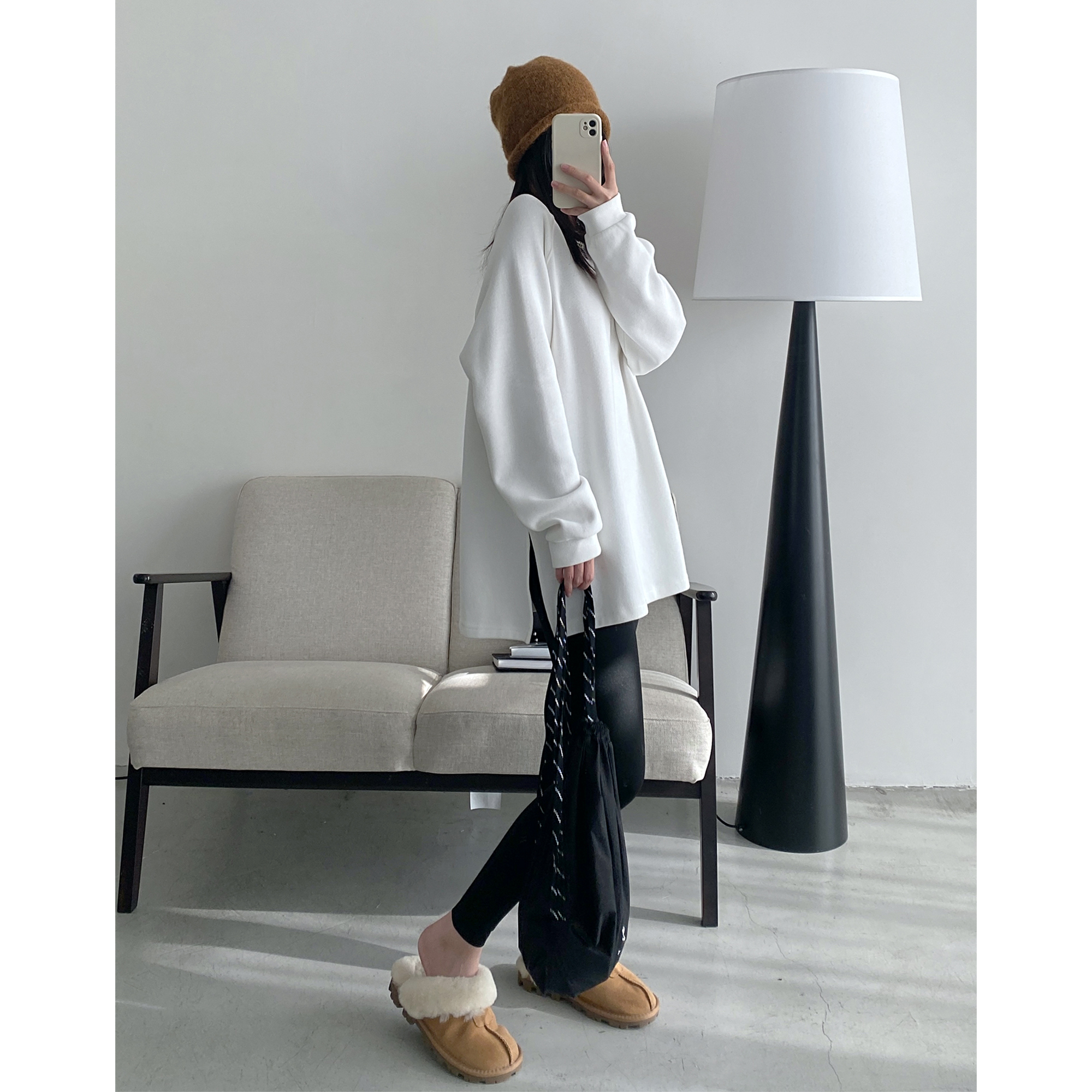 sun柚 磨毛抓绒T恤宽松秋冬季新款女加厚中长款打底衫遮屁股上衣