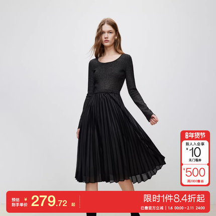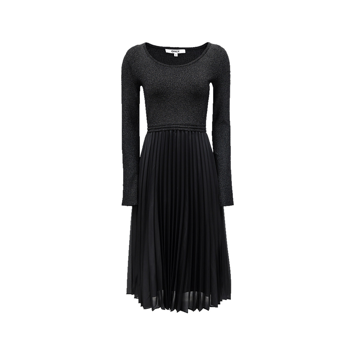 绫致ONLY秋冬新时尚拼接光感中长款百褶裙连衣裙女百搭