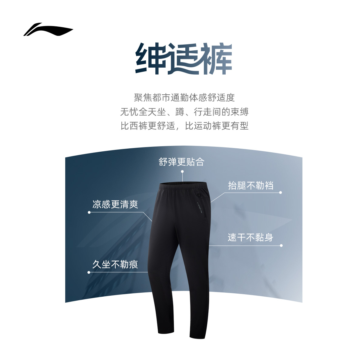 李宁绅适裤丨通勤裤商务通勤休闲裤透气裤子男款夏薄款速干运动裤