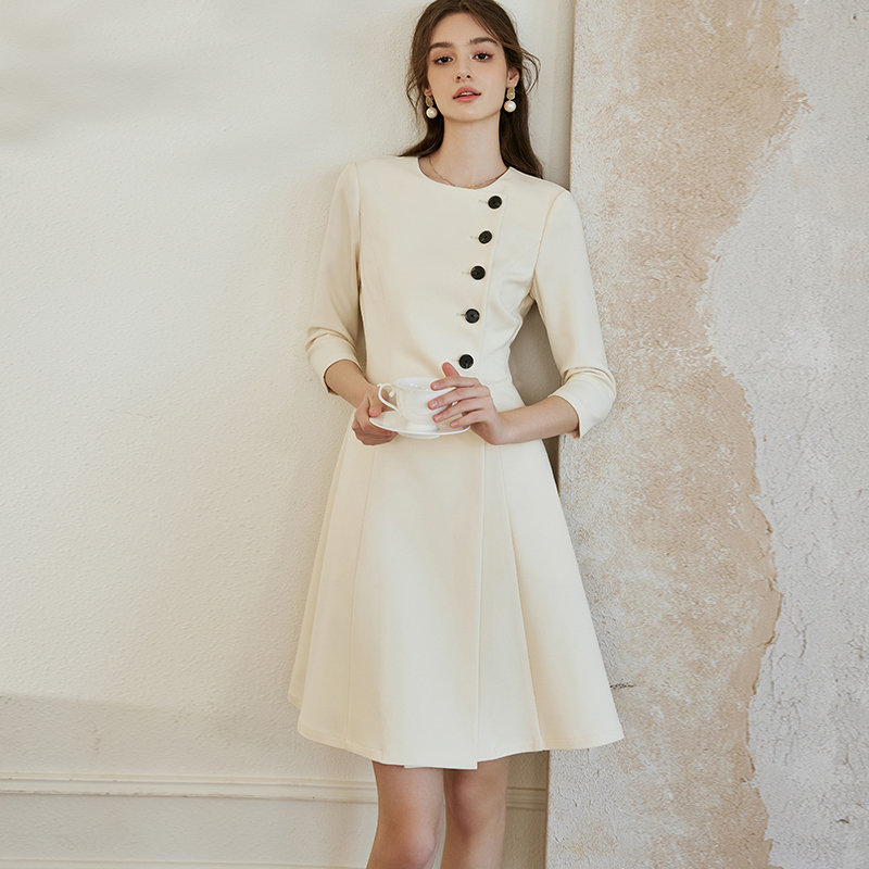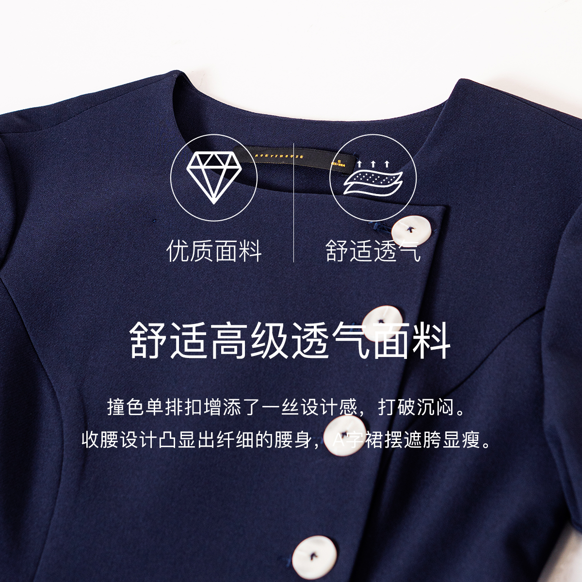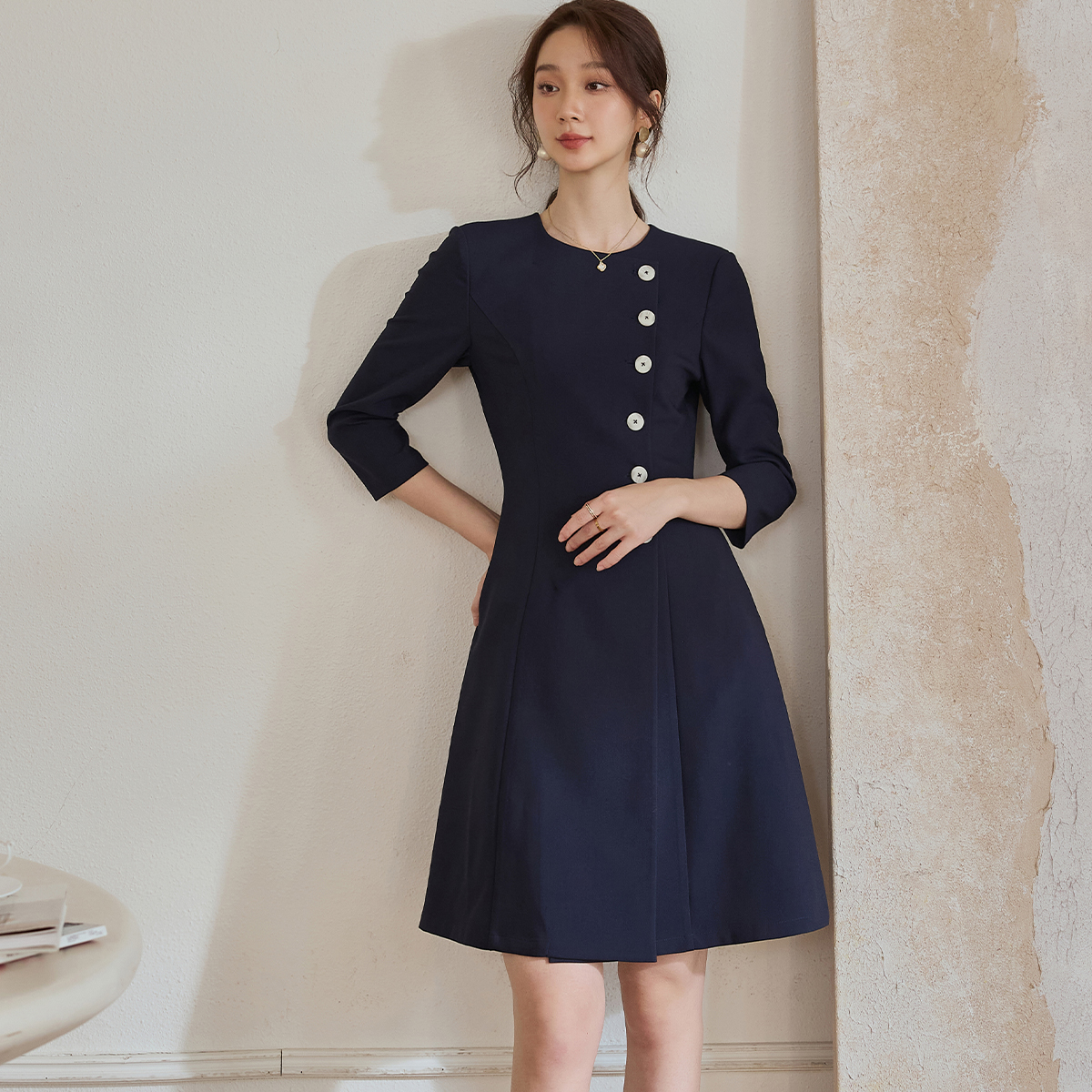 罗衣高级深蓝色通勤连衣裙女2025春季新款知性职业修身裙子11567