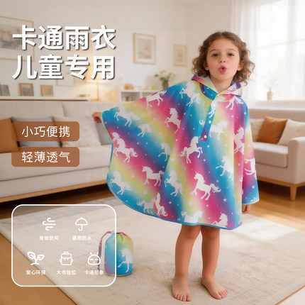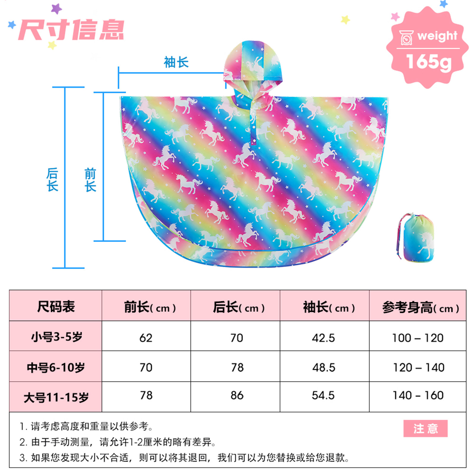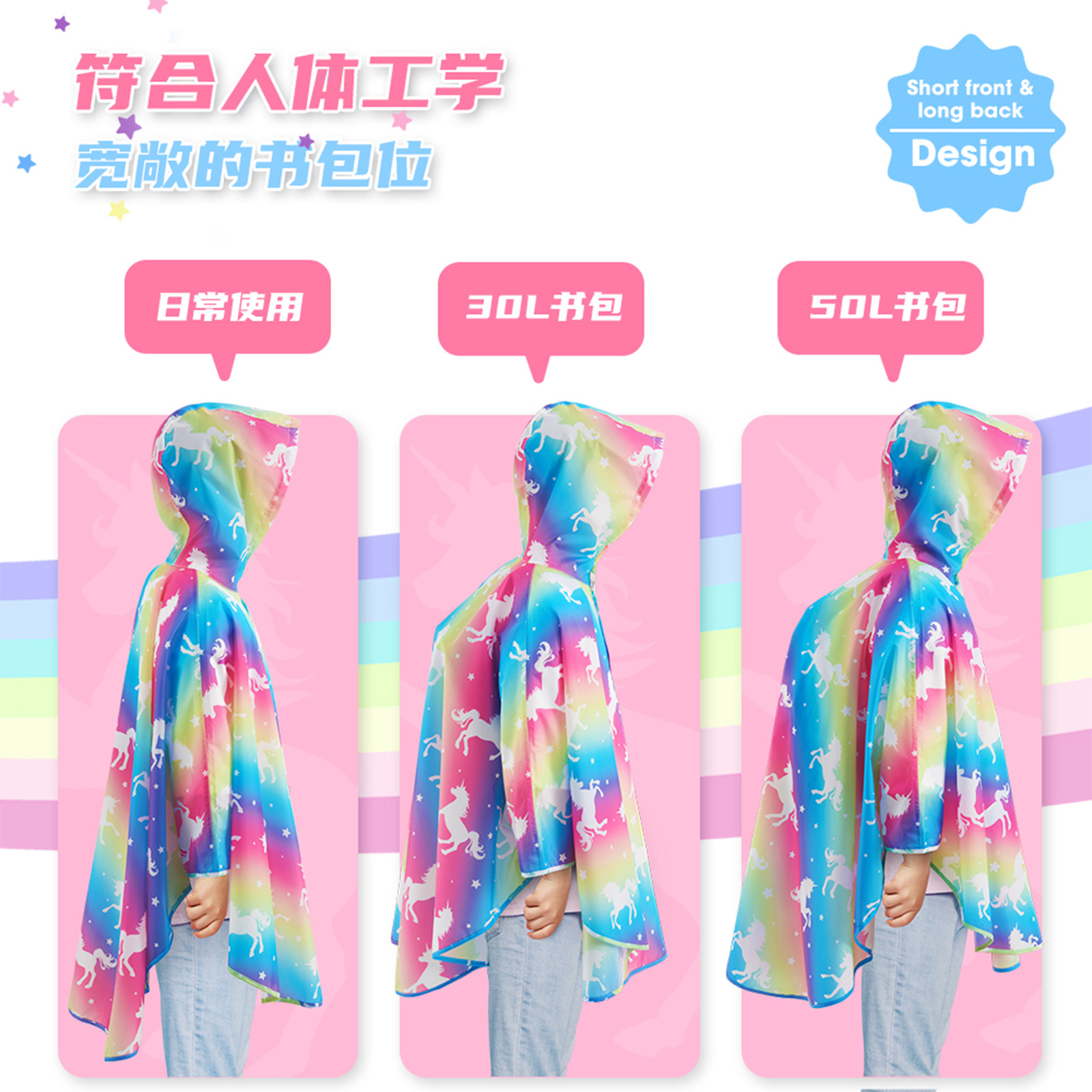开学季儿童雨衣连帽卡通雨披幼儿园小学生轻便型外套可爱彩虹渐变