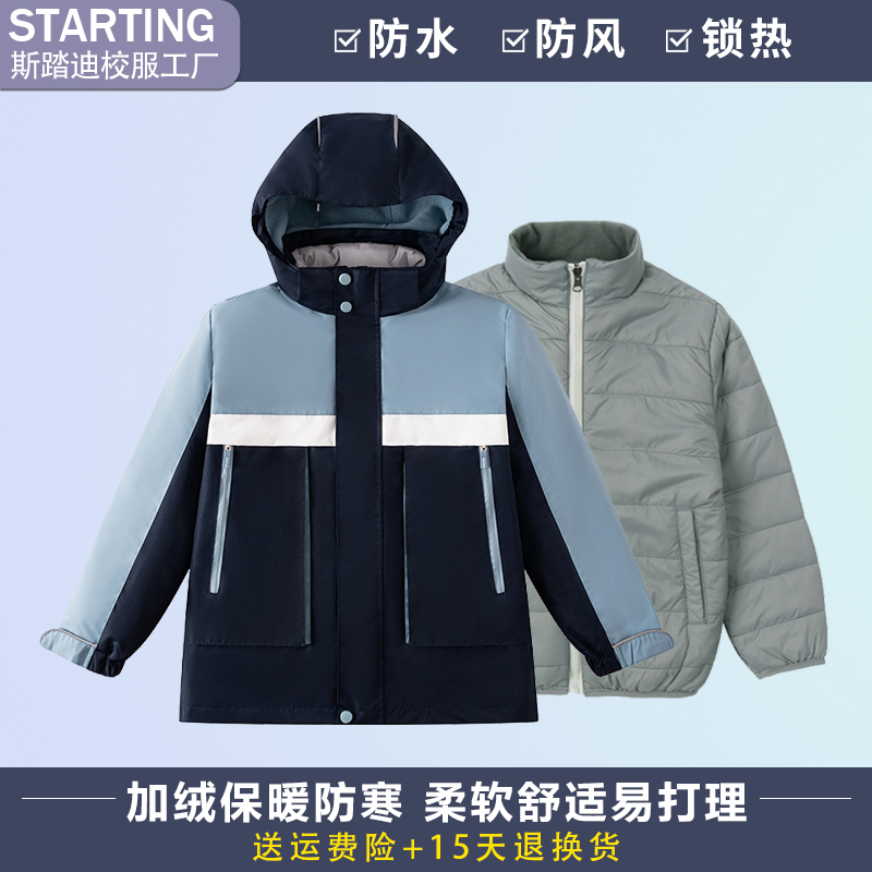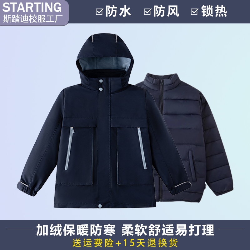 学生校服藏青湖蓝冲锋衣棉服棉袄防寒服中小学生冬季男女班服套装