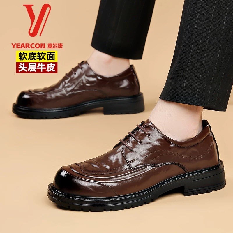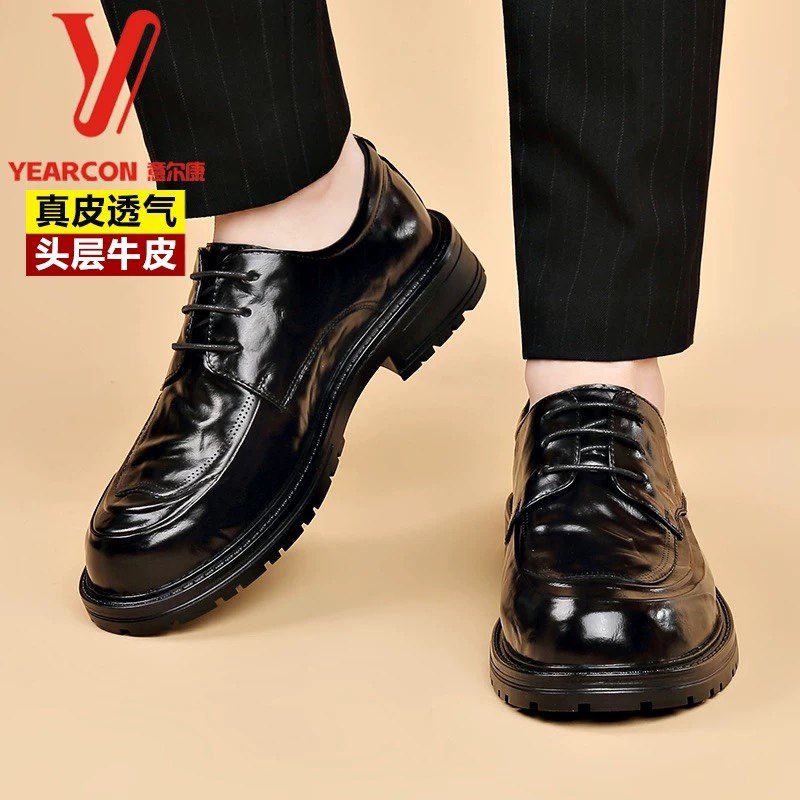 意尔康男鞋2025新款真皮透气商务正装皮鞋英伦休闲男鞋新郎结婚鞋