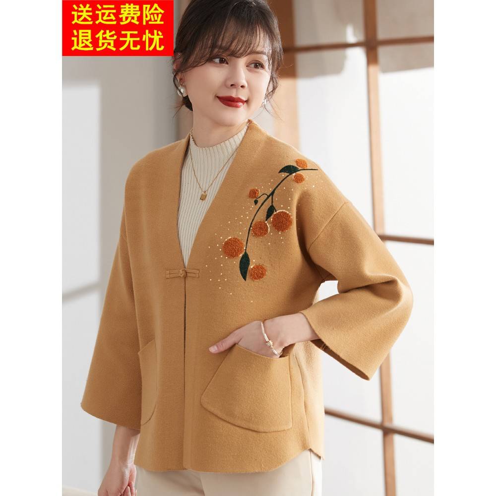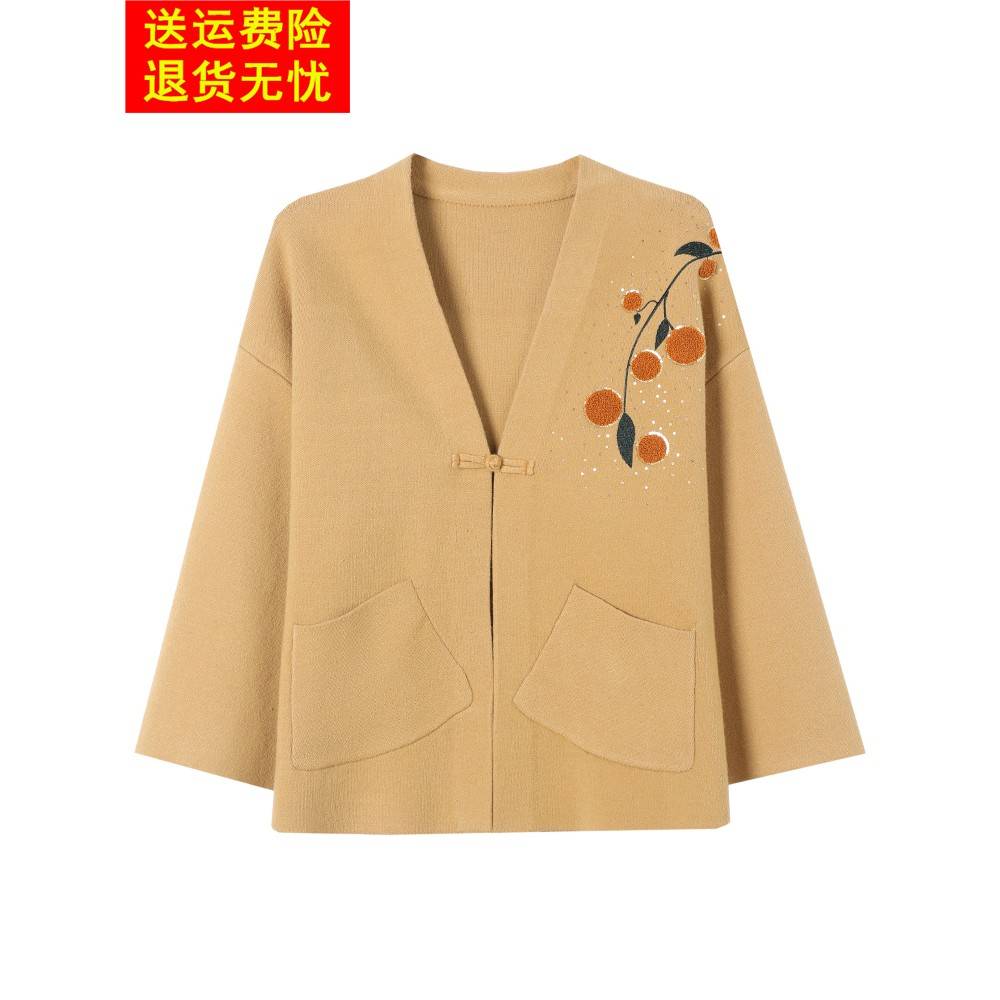 喜卉妈妈秋装针织开衫两件套洋气50岁中老年女装春秋短款毛衣外套