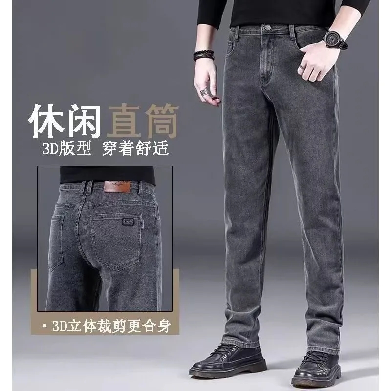 男士弹力牛仔裤修身直筒休闲长裤秋冬季工地干活男款耐磨工作裤子