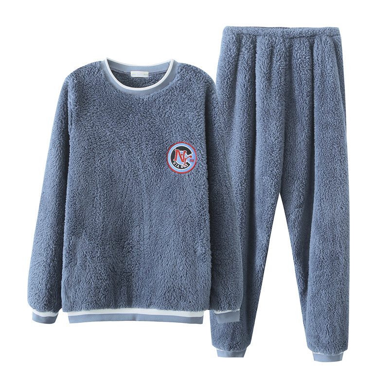 男士睡衣冬季珊瑚绒加厚加绒圆领套头大码卡通青少年法兰绒家居服