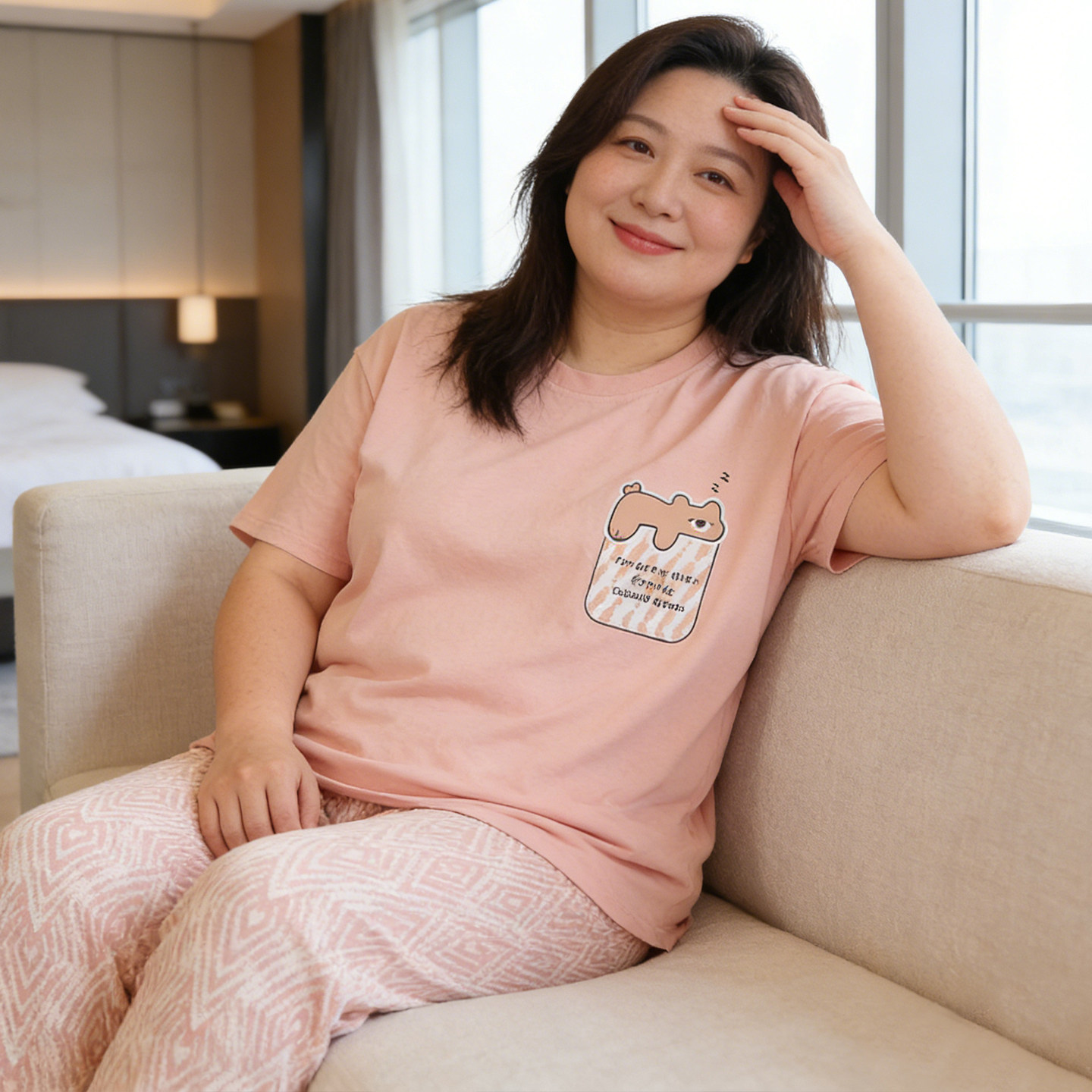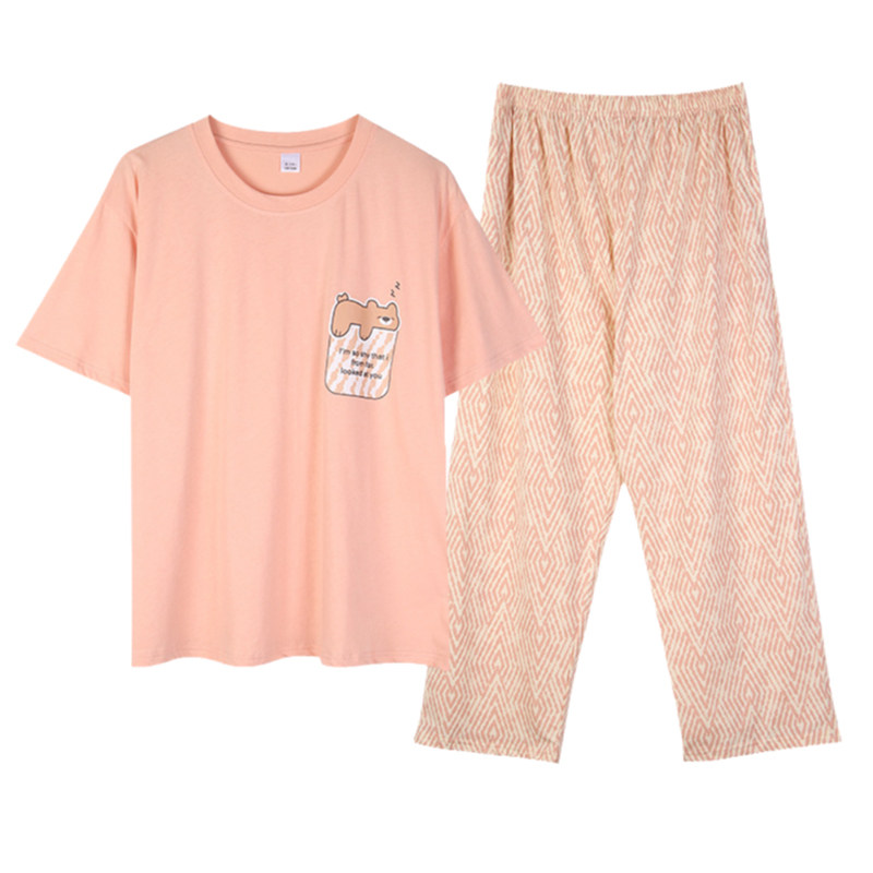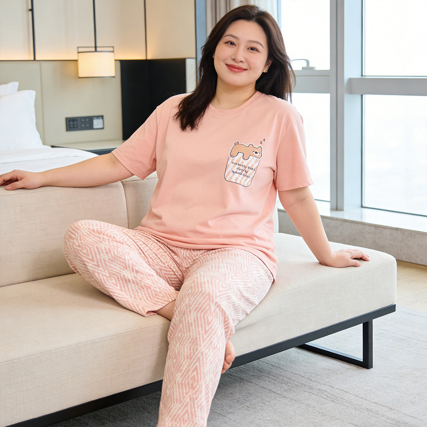 胖mm大码女士睡衣纯棉宽松春夏短袖长裤两件套家居服女200斤夏季