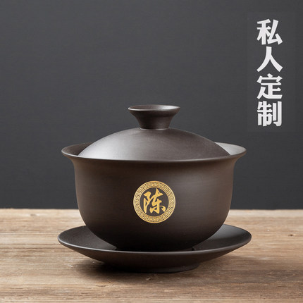 盖碗茶杯紫砂单个三才主定制刻字