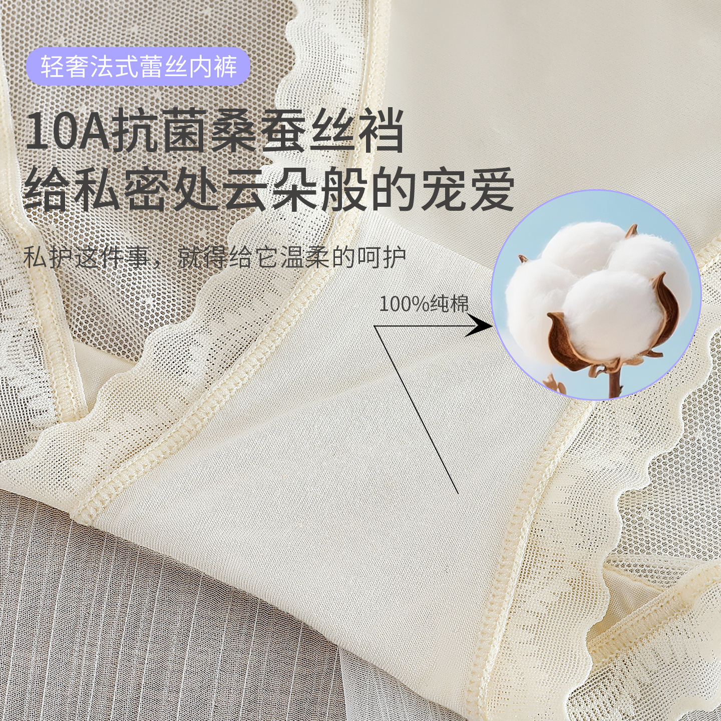 樱姿娜轻奢法式纯欲内裤女10A抗菌蚕丝裆性感镂空细带蕾丝三角裤