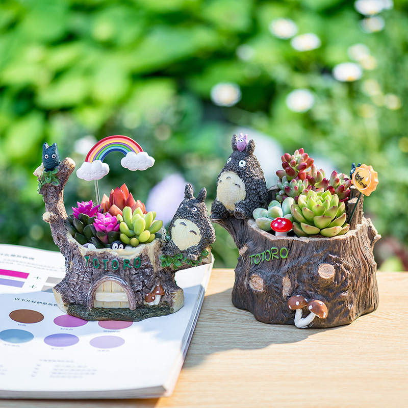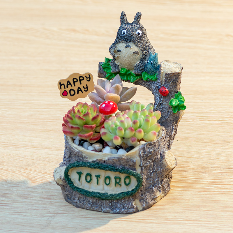 卡通龙猫树桩花盆多肉组合盆栽