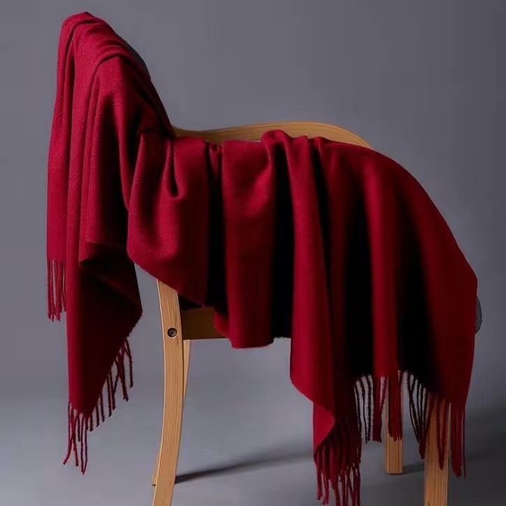 酒红枣红新娘披肩女喜婆婆妈妈配旗袍外搭配婚宴礼服秋冬保暖围巾