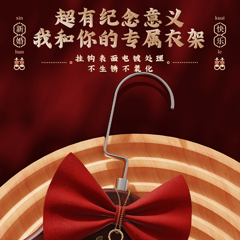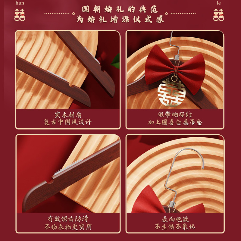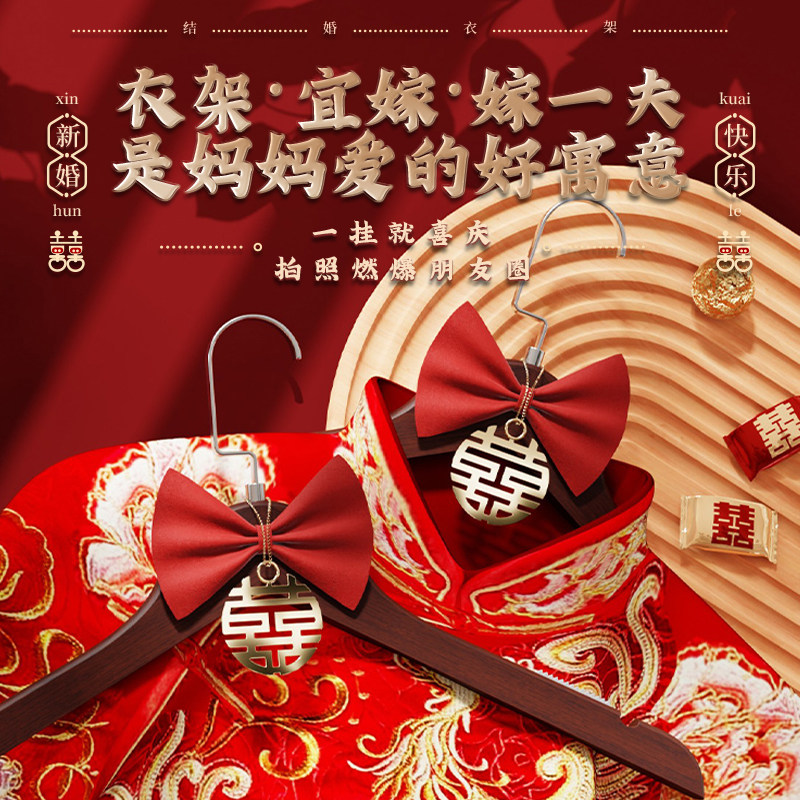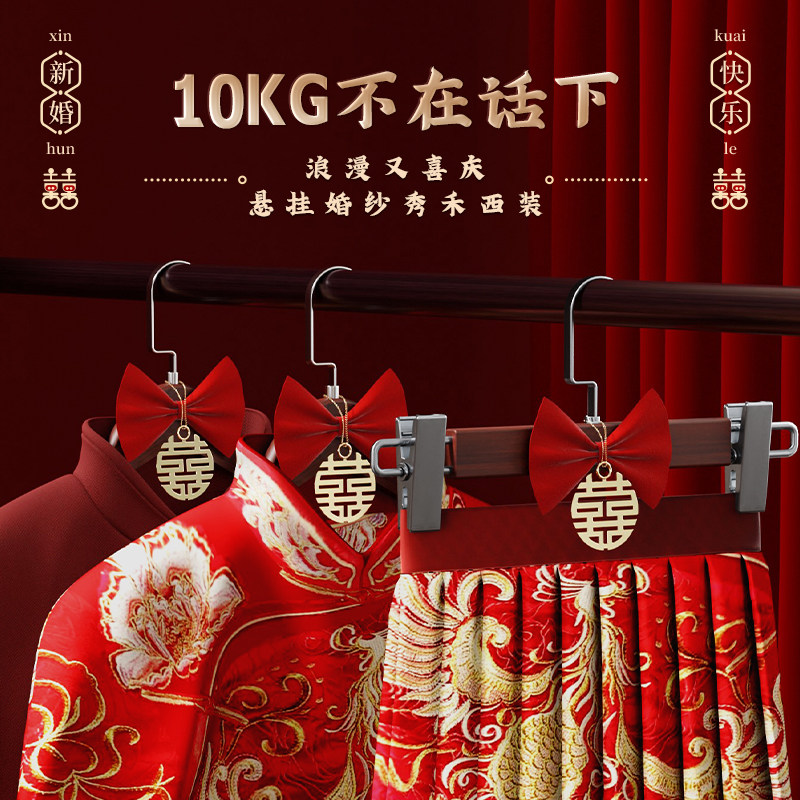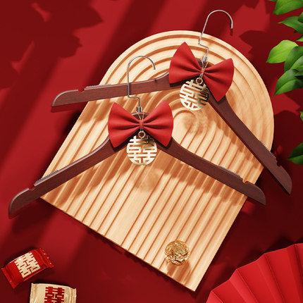 日本结婚衣架新郎新娘红色无痕喜字衣架秀禾婚纱西装实木挂衣架撑