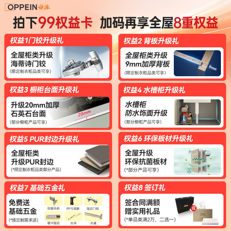 【直播专享】欧派全屋定制柜橱柜定制全国通用99元抵600元 需核销