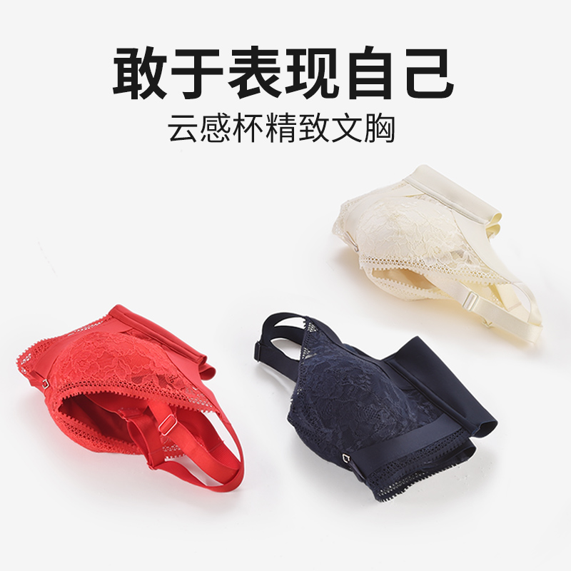 商场同款MYBODY内衣女蕾丝性感小胸聚拢本命年红调整型文胸胸罩